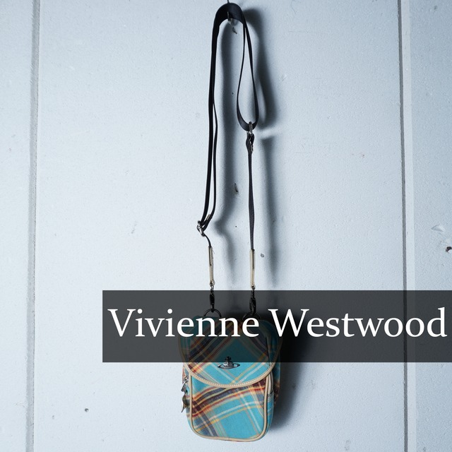 【Vivienne Westwood】ヴィヴィアンウエストウッド ”オーブロゴ” タータンチェック柄リアルレザー切替ショルダーバッグ blue&yellow&red