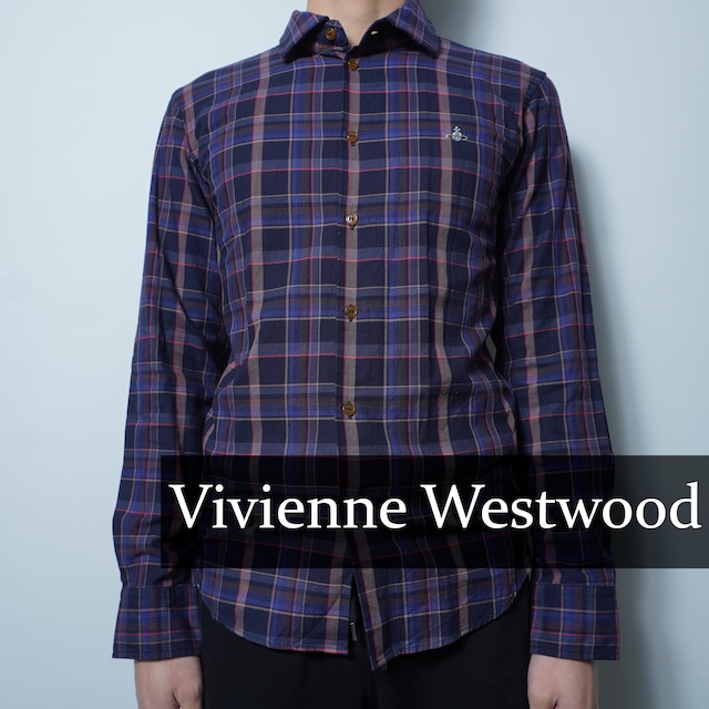 【Vivienne Westwood】ヴィヴィアンウエストウッド "オーブロゴ刺繍” チェック柄カラーシャツ blue&red