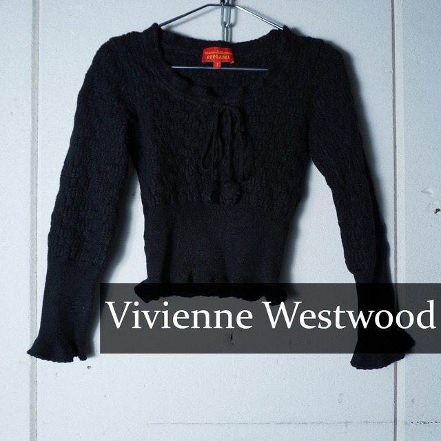 【Vivienne Westwood】ヴィヴィアンウエストウッド ウール100% ボンボン付リボンクロップドニット black