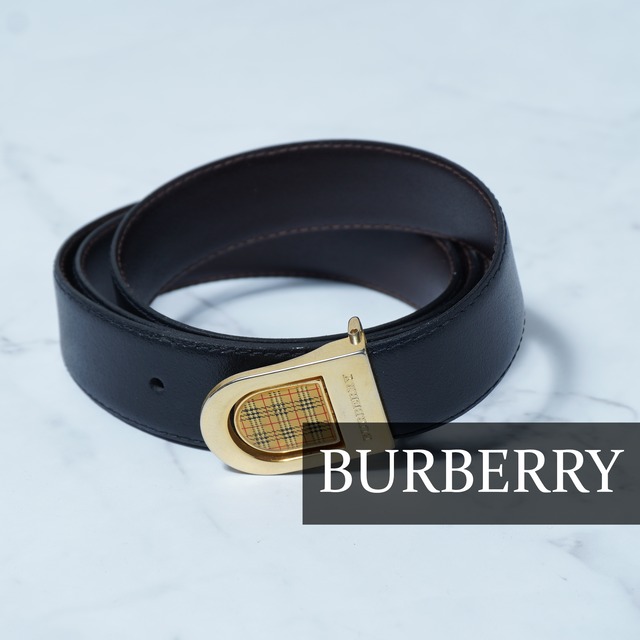 【BURBERRY】バーバリー ノヴァチェック・ロゴ入りゴールドバックルレザーベルト black