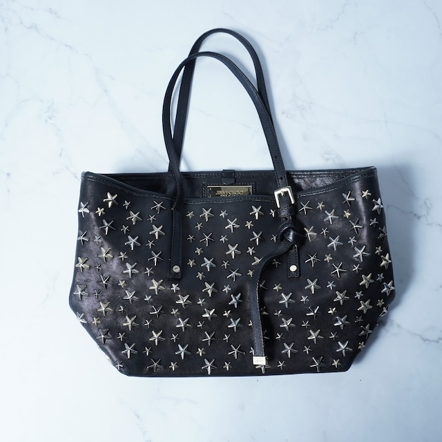 【JIMMY CHOO】ジミーチュウ ”ロゴ入” スタースタッズレザートートバッグ black