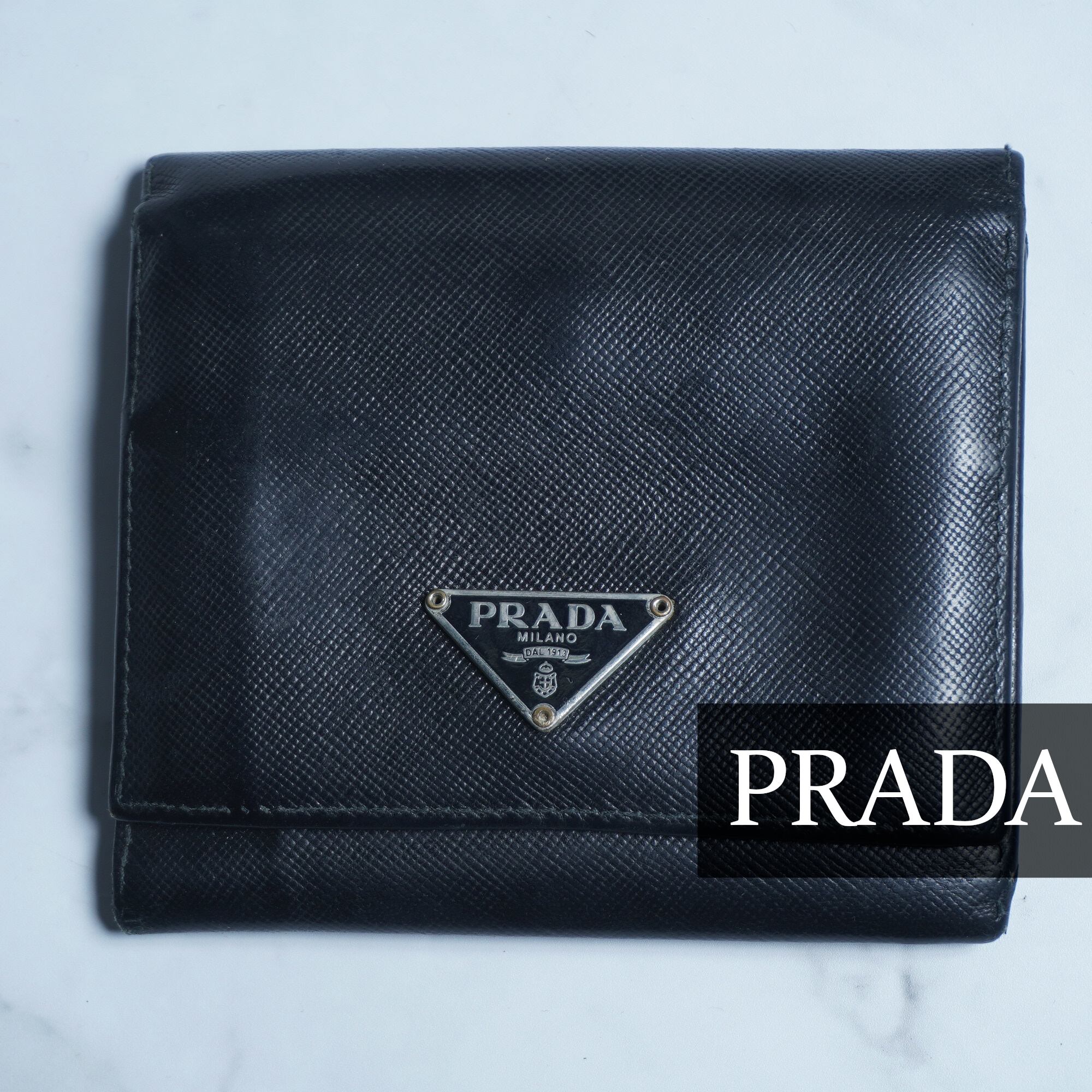 【PRADA】プラダトライアングルプレート 三つ折り財布 black