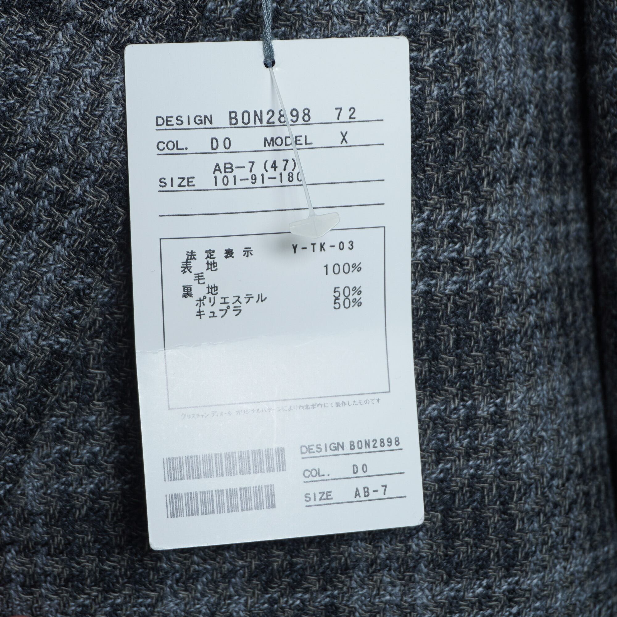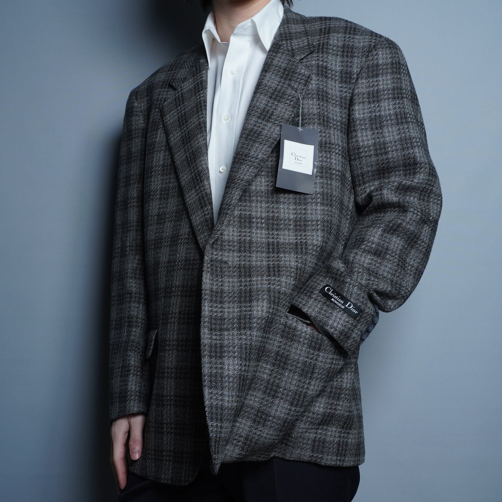 【Christian Dior】クリスチャンディオール ウール100% オンブレチェック デッドストック 2Bテーラードジャケット gray black