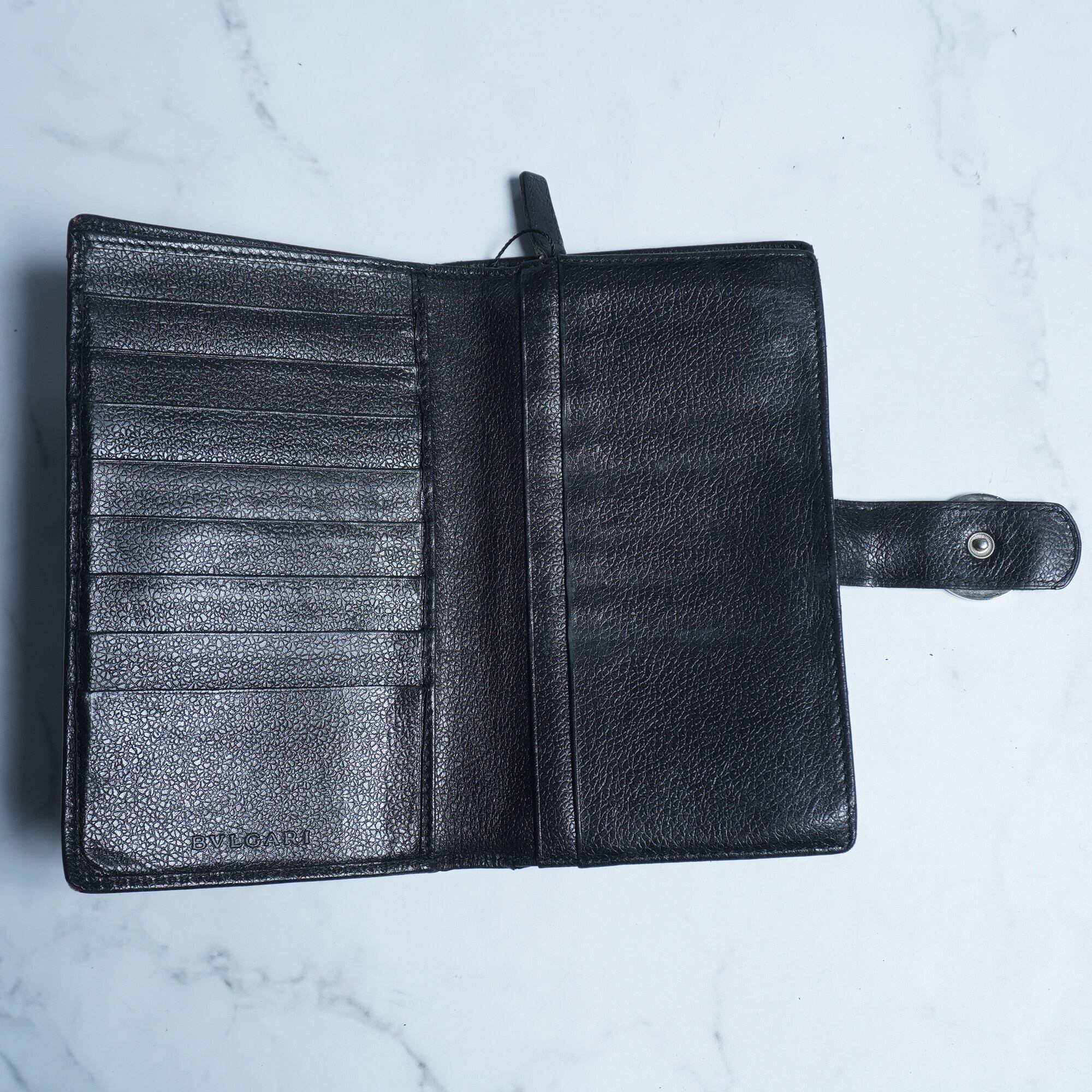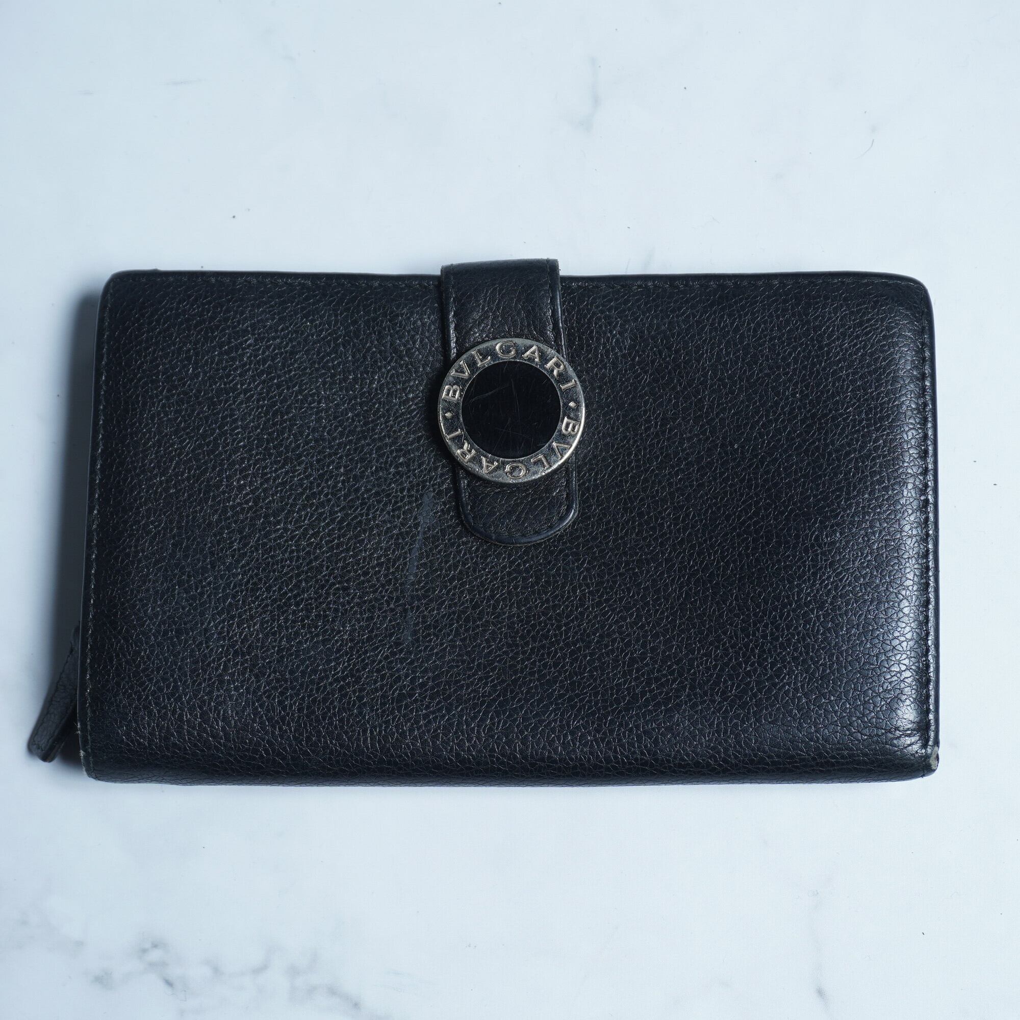 【BVLGARI】カーフレザー二つ折り長財布 black