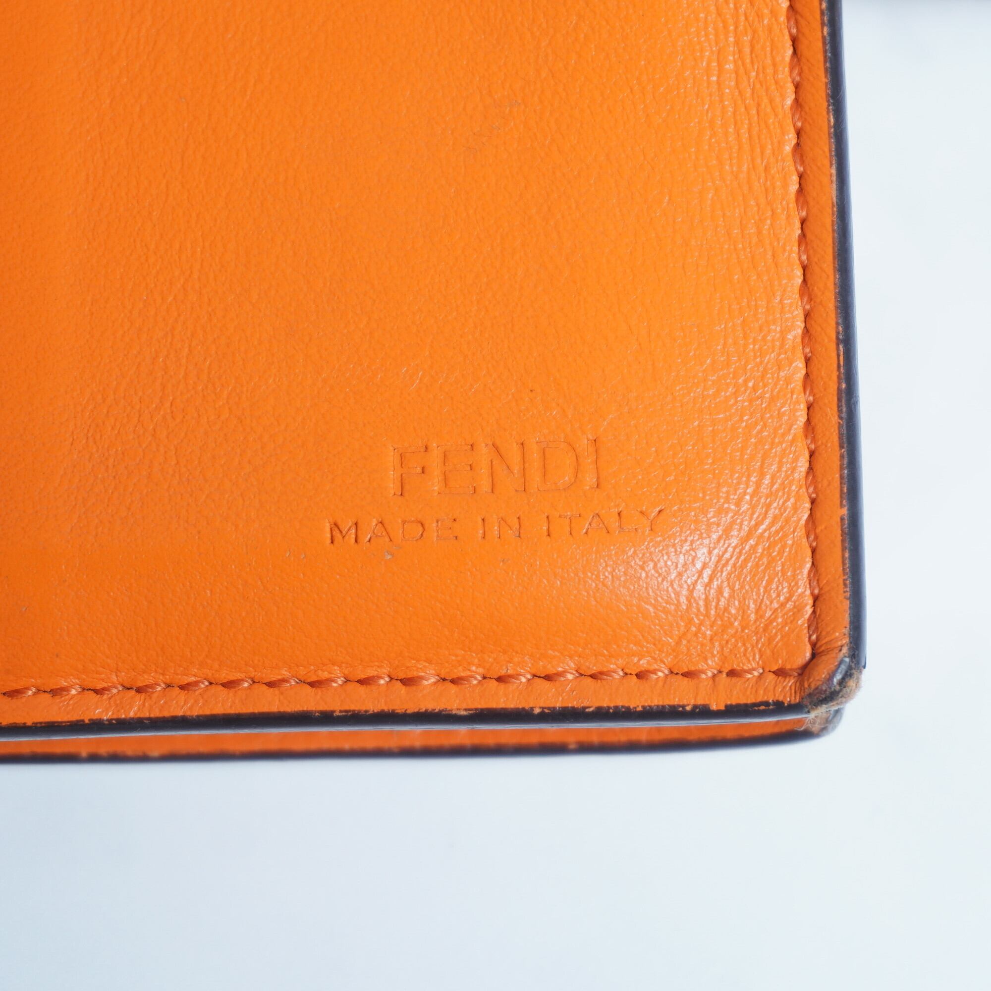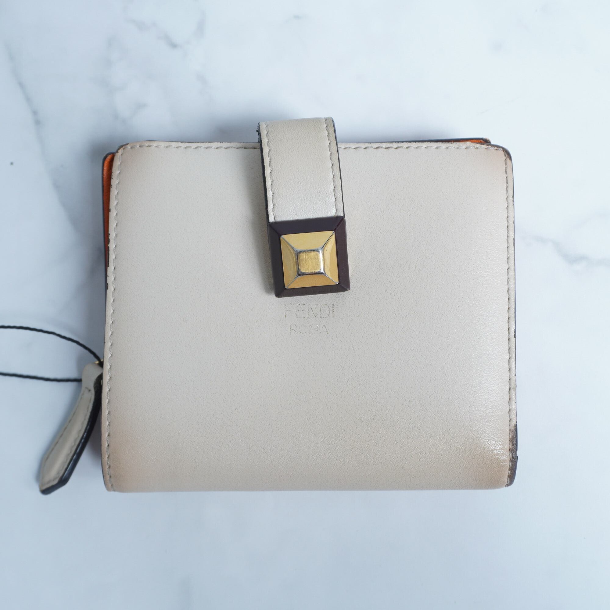 【FENDI】スタッズ二つ折り財布 ivory×orange