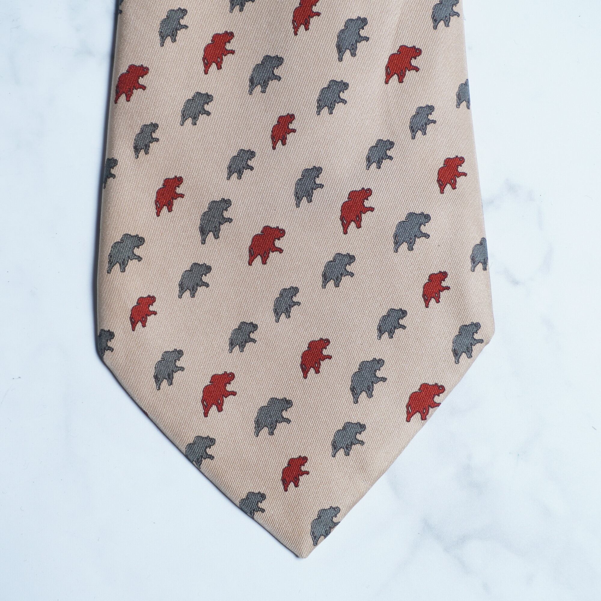 【HUNTING WORLD】エレファント総柄 イタリア製 ネクタイ beige