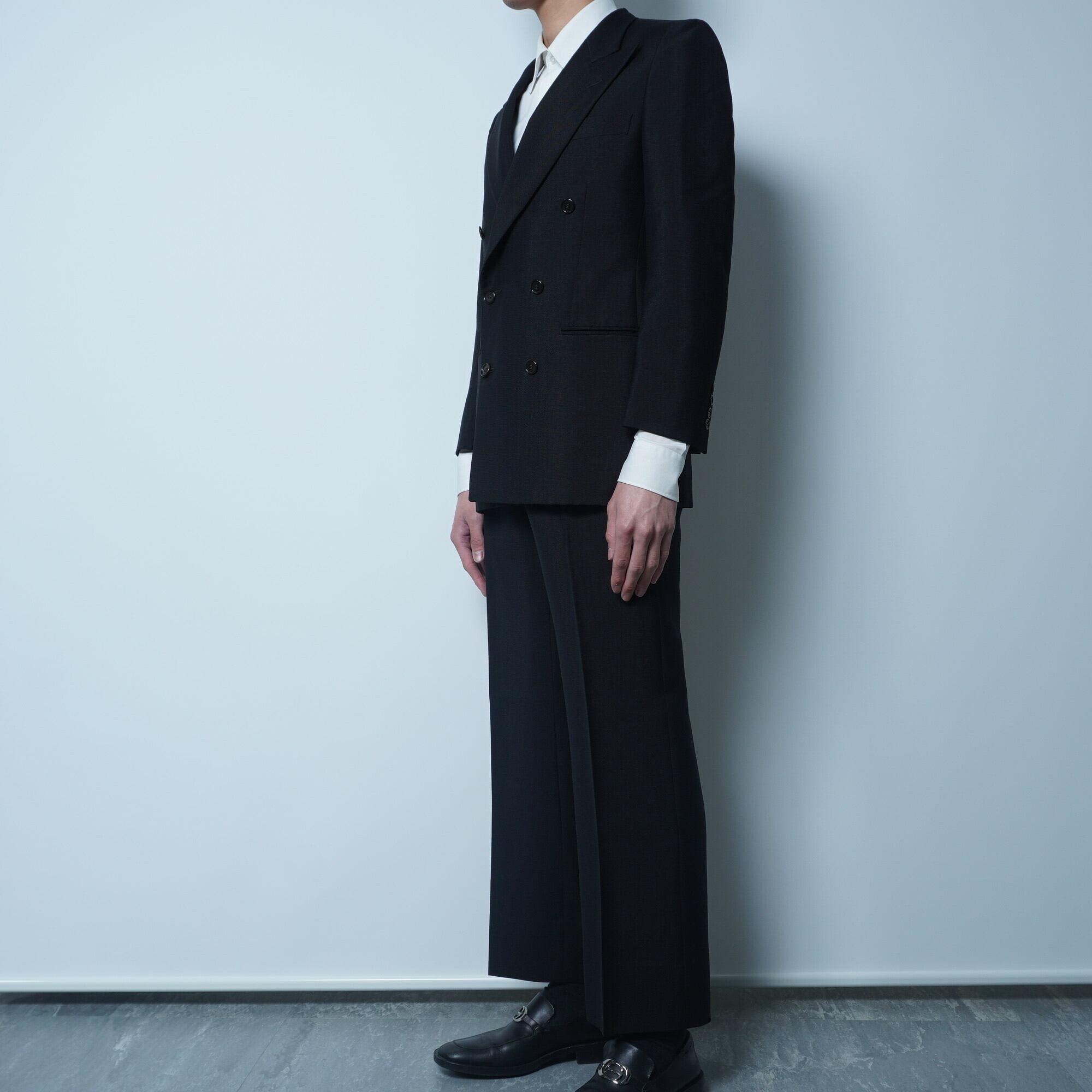 【Yves Saint Laurent】イブサンローラン NEWウール100% ピークドラペル ダブルセットアップスーツ black