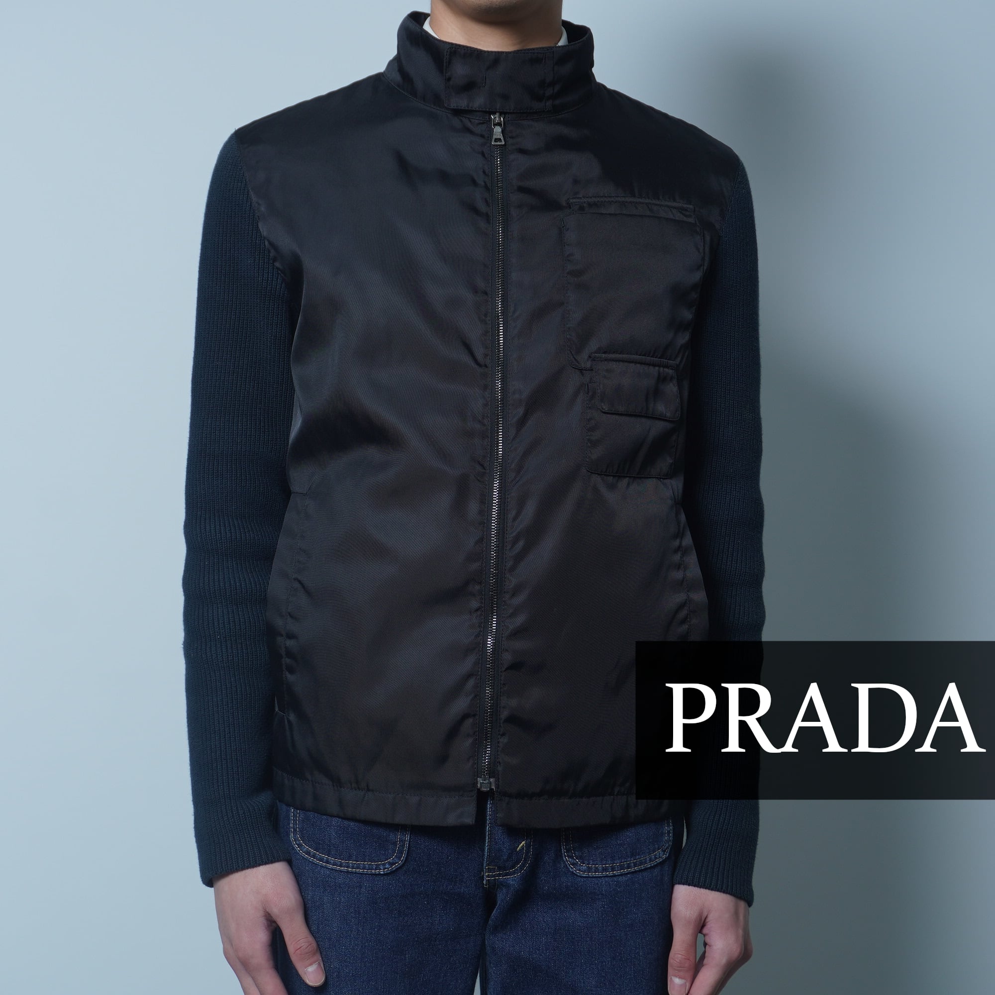 【PRADA】プラダ ナイロン×コットンニット ドッキング ジップジャケット navy