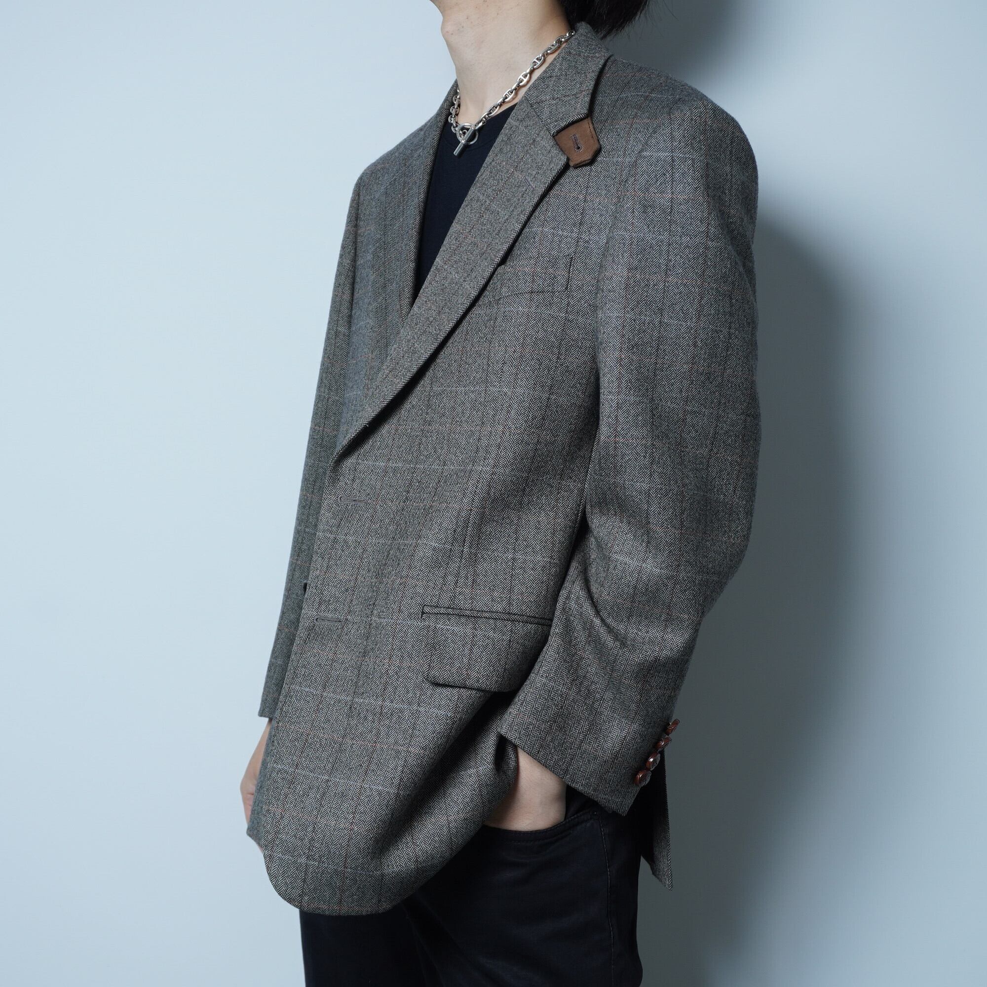 【BURBERRY】バーバリー "アンゴラ混" ウール ホース刻印レザーボタン 2B チェックテーラードジャケット