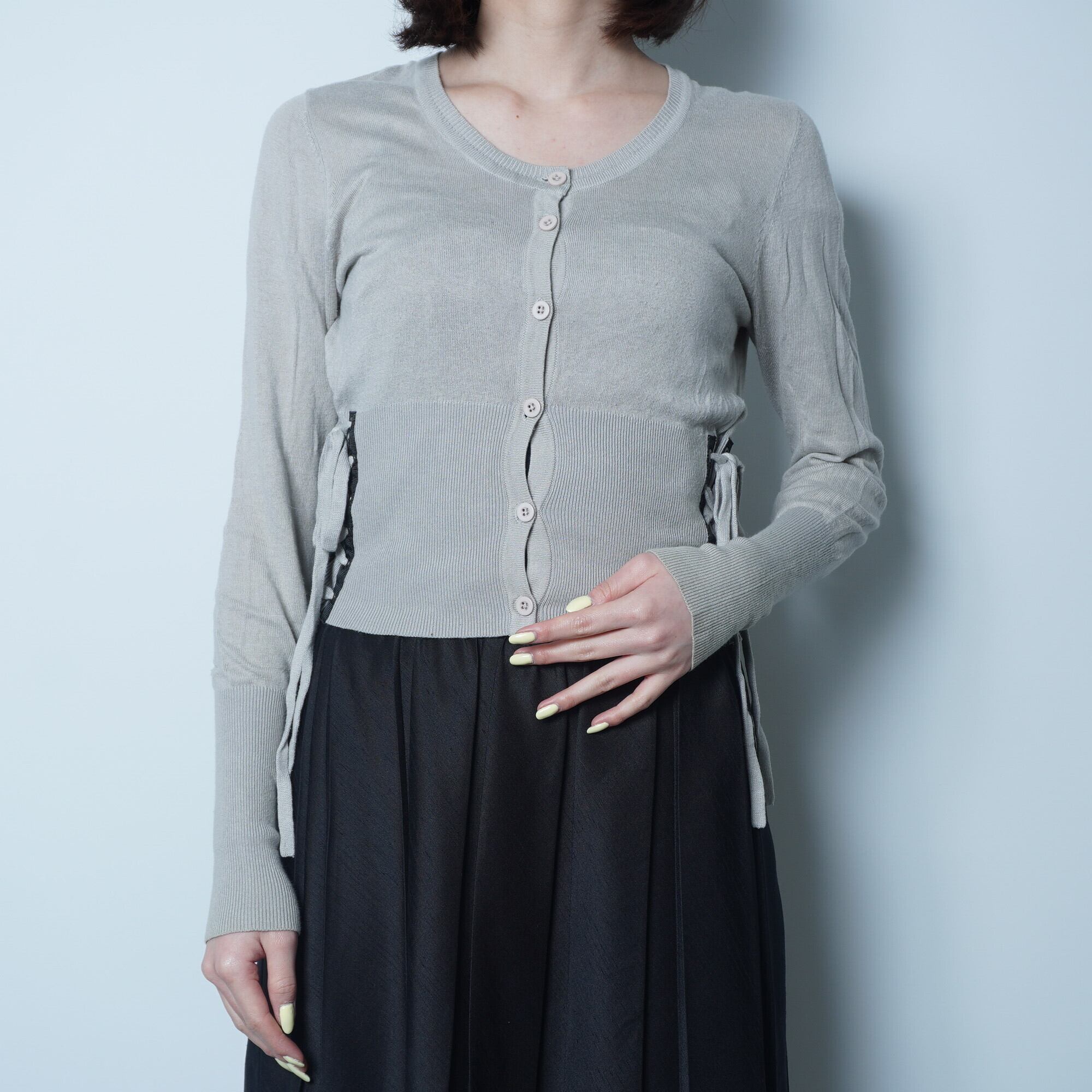 【PAMEO POSE】サイドレースアップ レーヨンコットンニットカーディガン