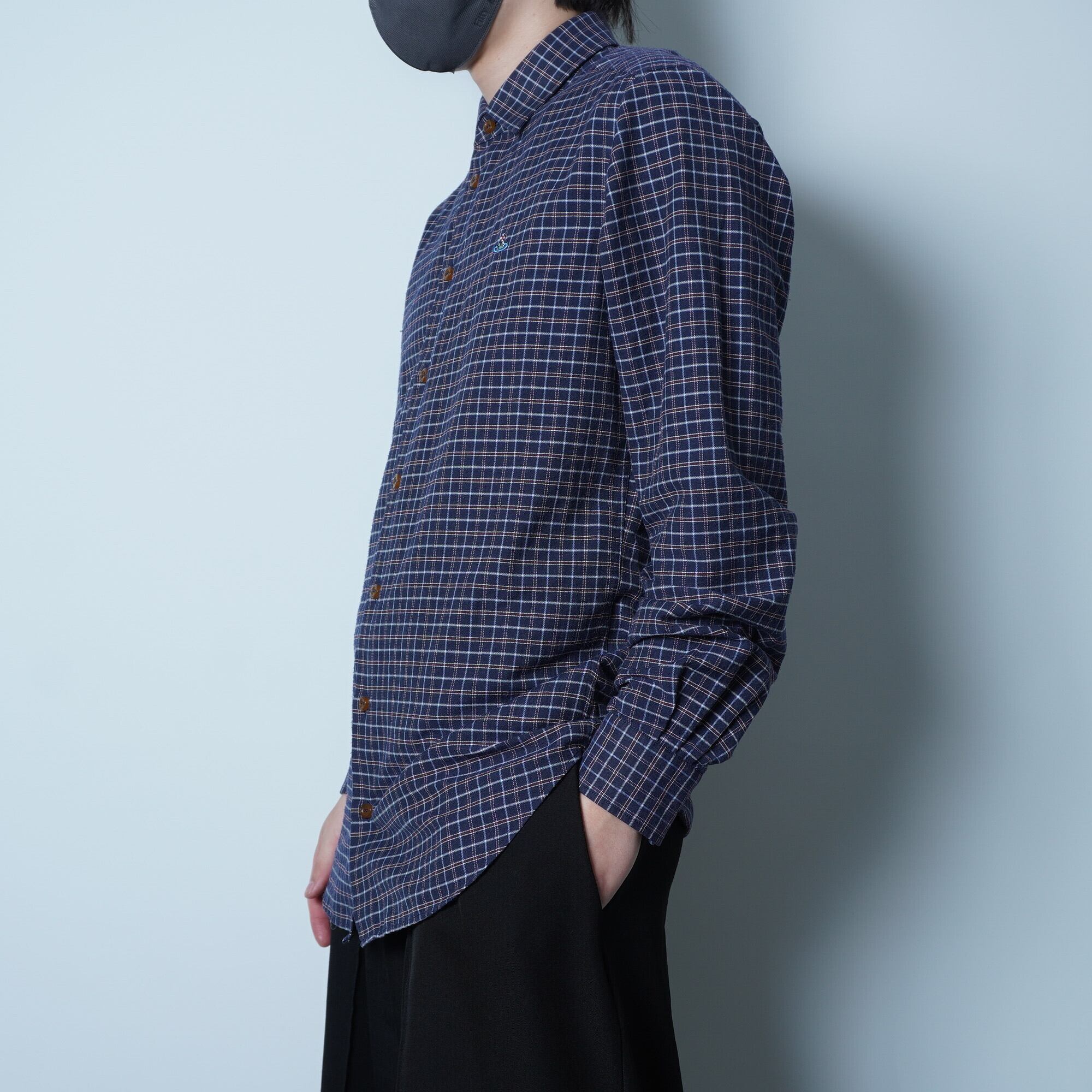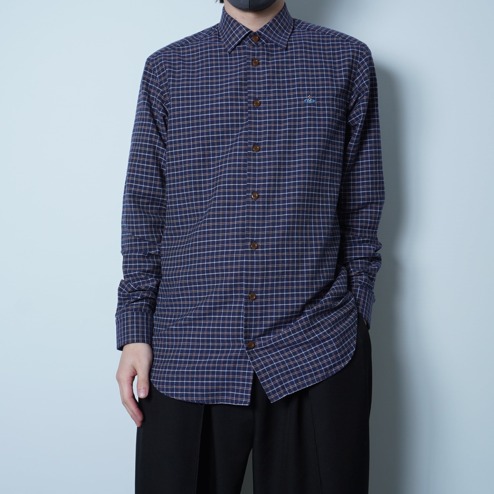 【Vivienne Westwood】ヴィヴィアンウエストウッド オーブ刺繡入 チェックシャツ navy