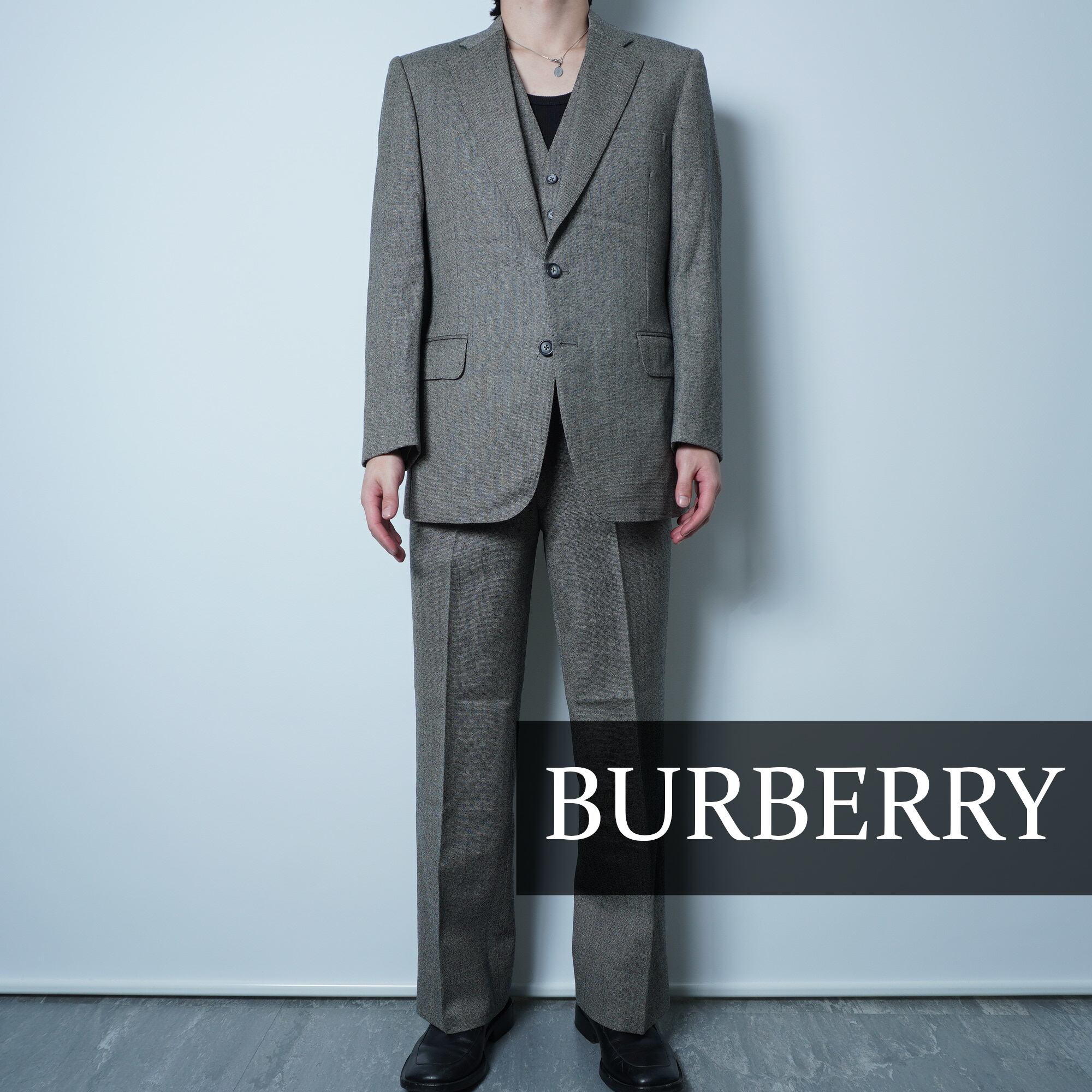 【Burberry】バーバリーウール100% シングル2B 3ピース セットアップスーツ gray