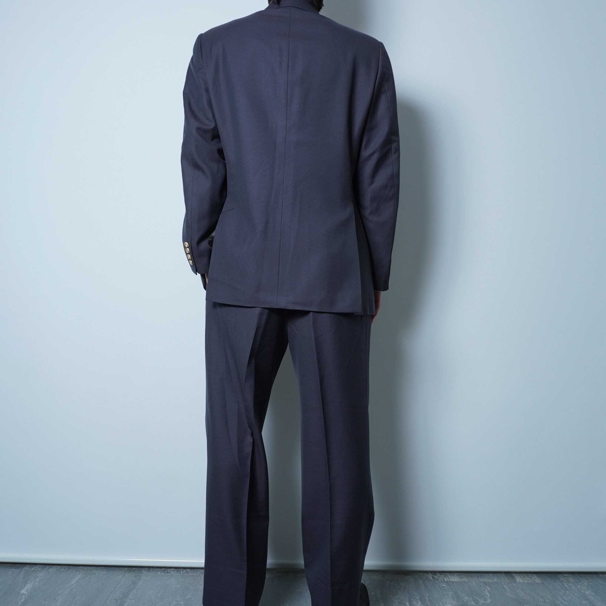 【Burberry】NEWウール ロゴ メタルボタン ダブル セットアップスーツ dark navy