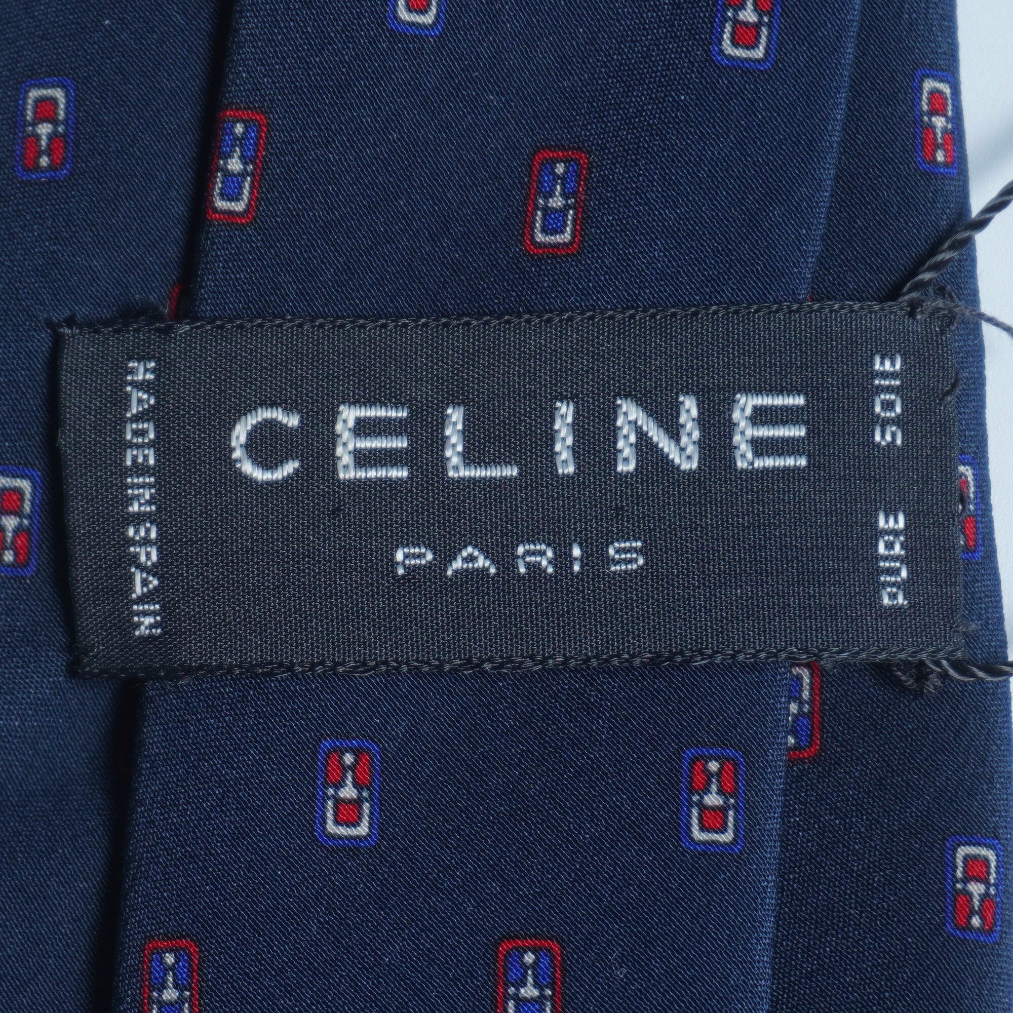 【CELINE】セリーヌ ネクタイ フランス製 シルク 総柄 navy