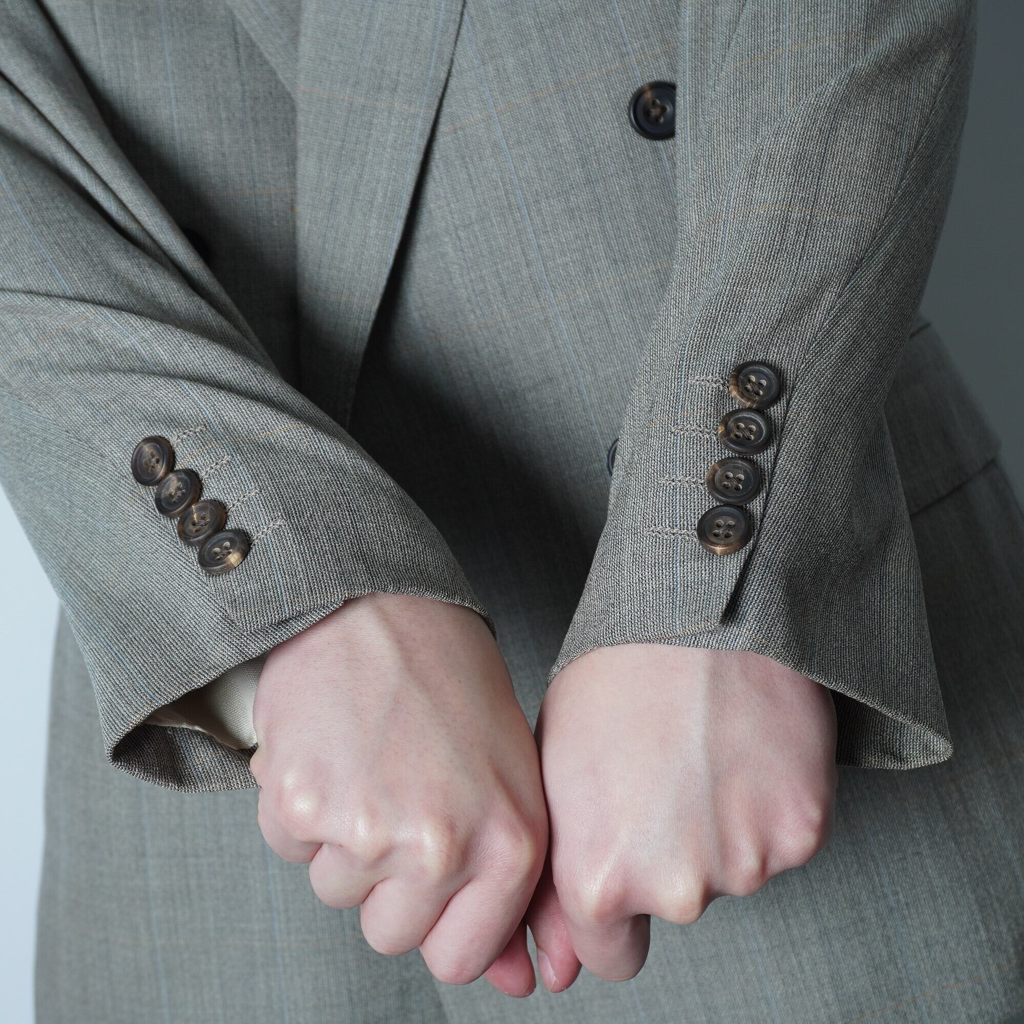【BURBERRY】バーバリー NEW ウール100% ウィンドペン ダブルセットアップスーツ gray khaki
