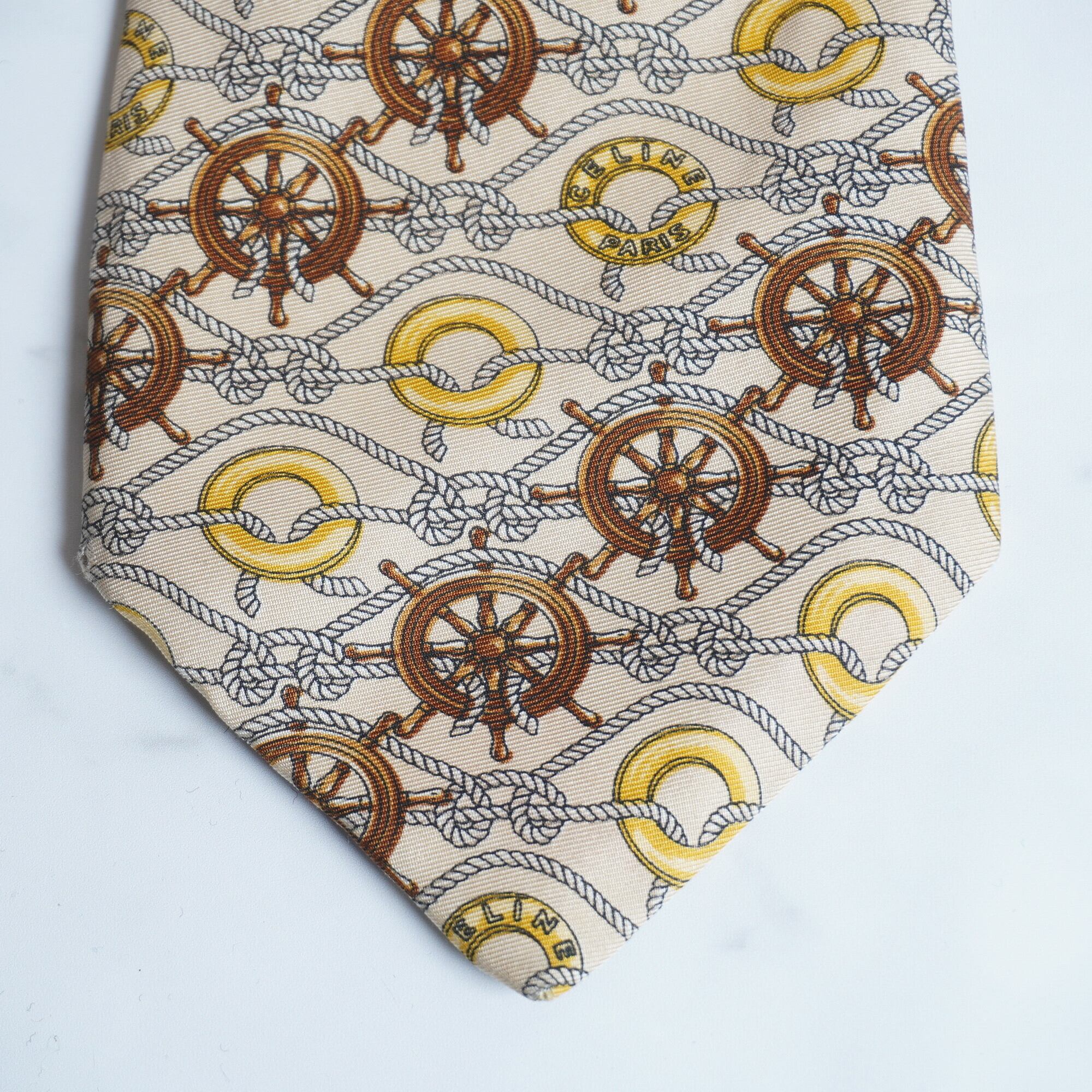 【CELINE】セリーヌ "舵輪柄"スペイン製 シルク100% ネクタイ beige