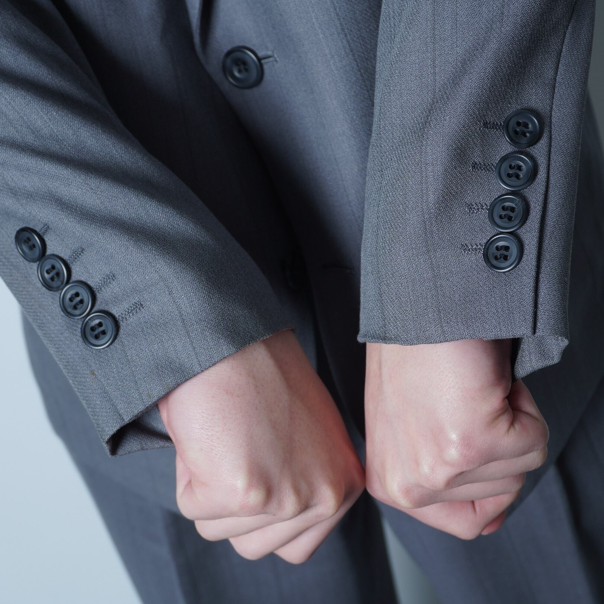 【Christian Dior】クリスチャンディオール ウールシャドーかすれストライプシングル2Bセットアップスーツ gray