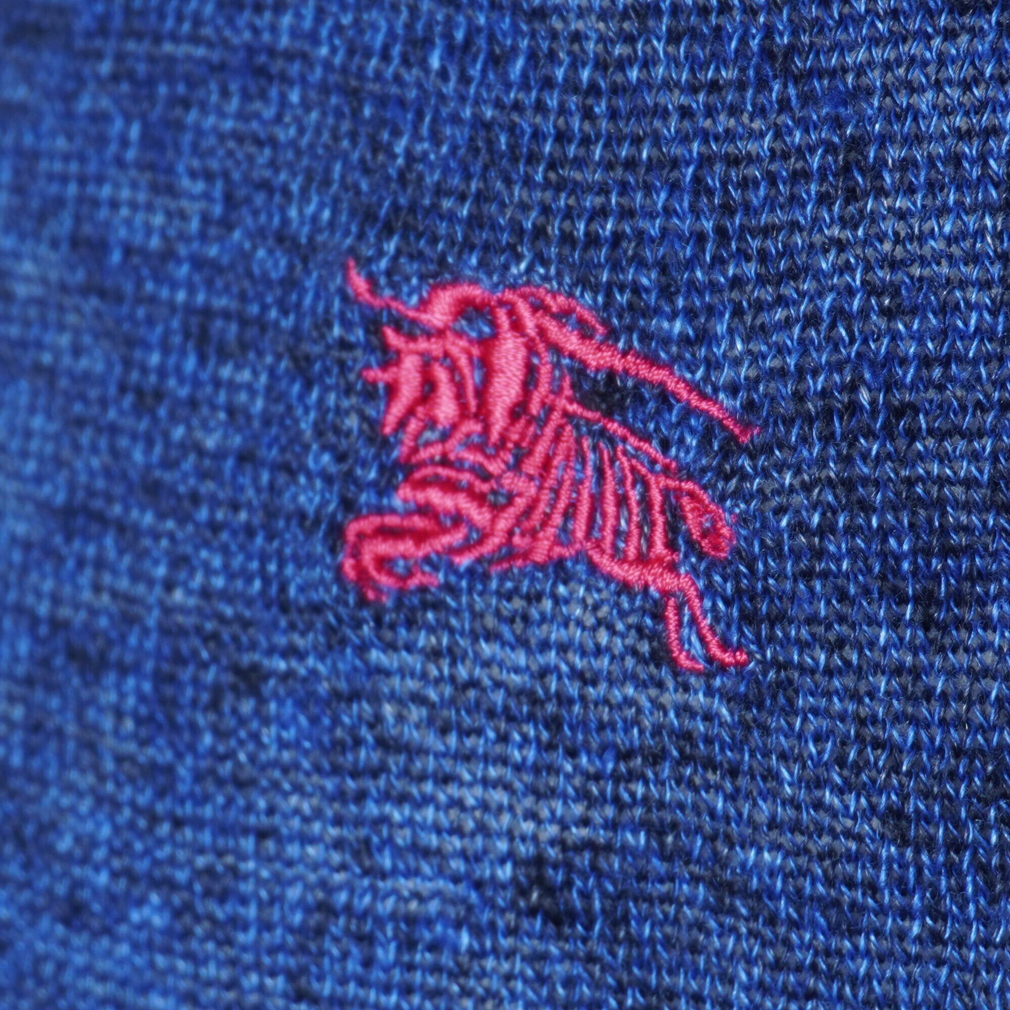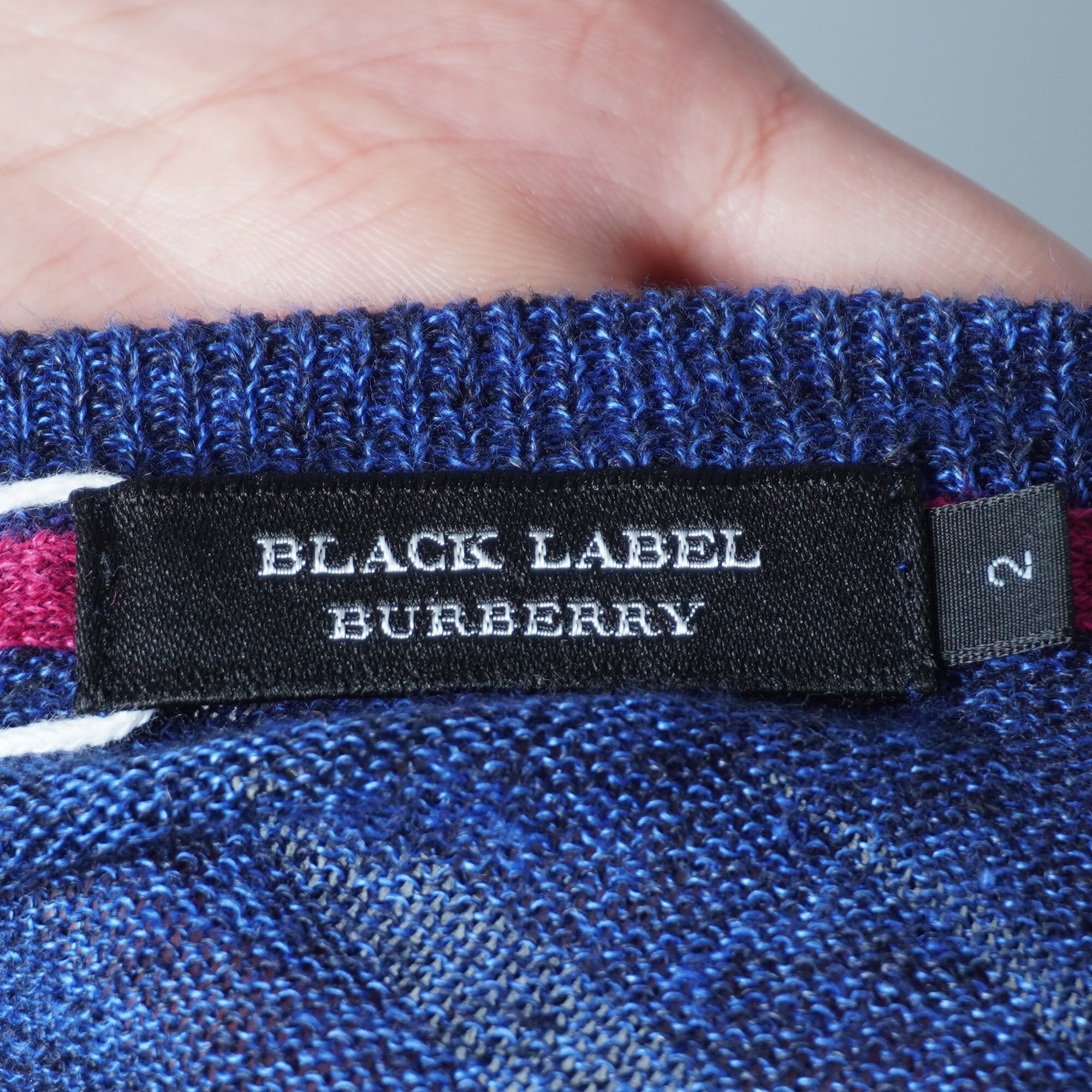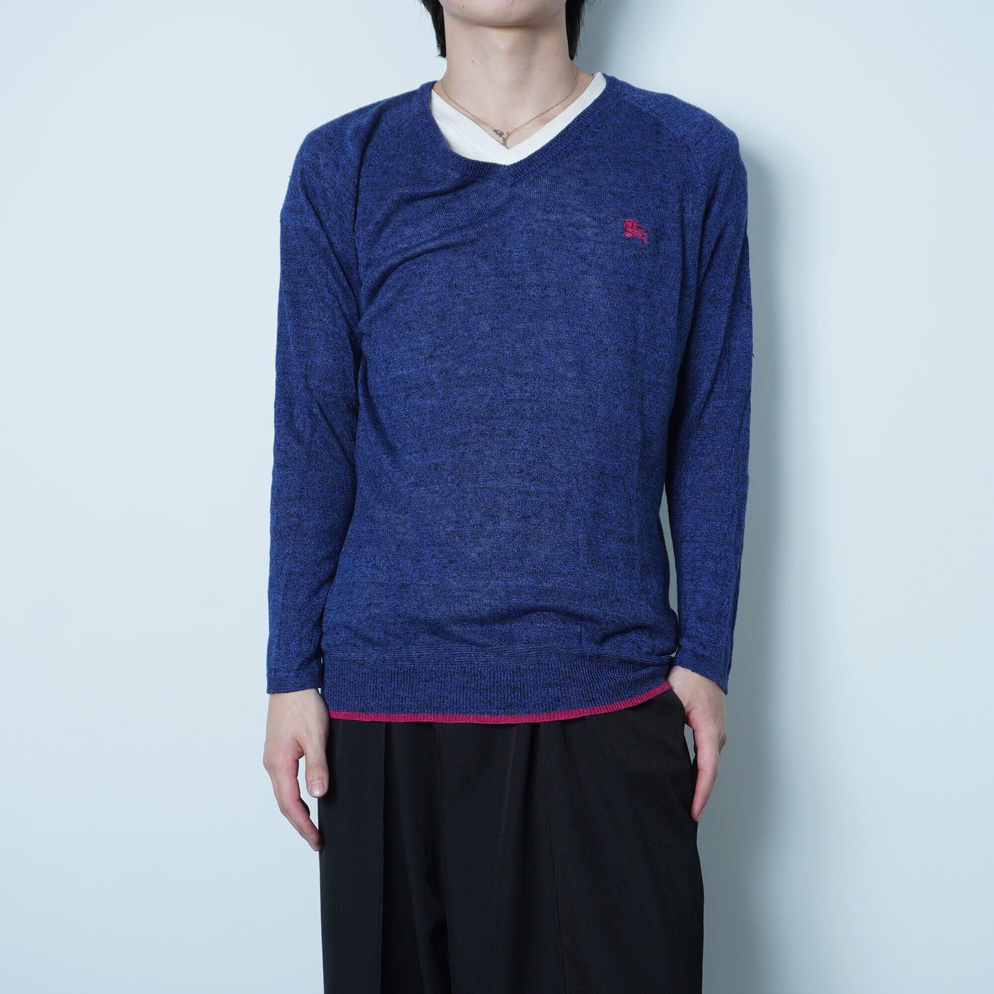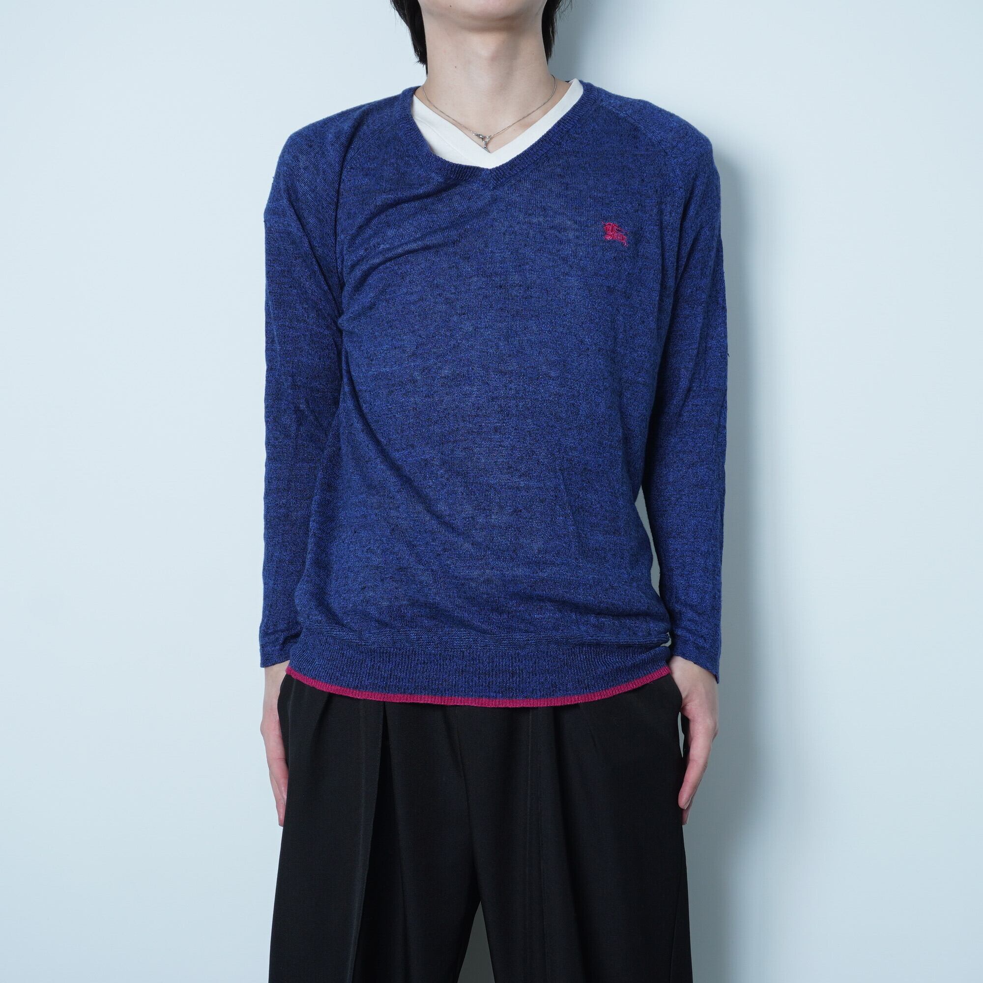 【BURBERRY BLACK LABEL】バーバリーブラックレーベル Y2K 麻100% Vネックカラー切り替えカットソー blue pink