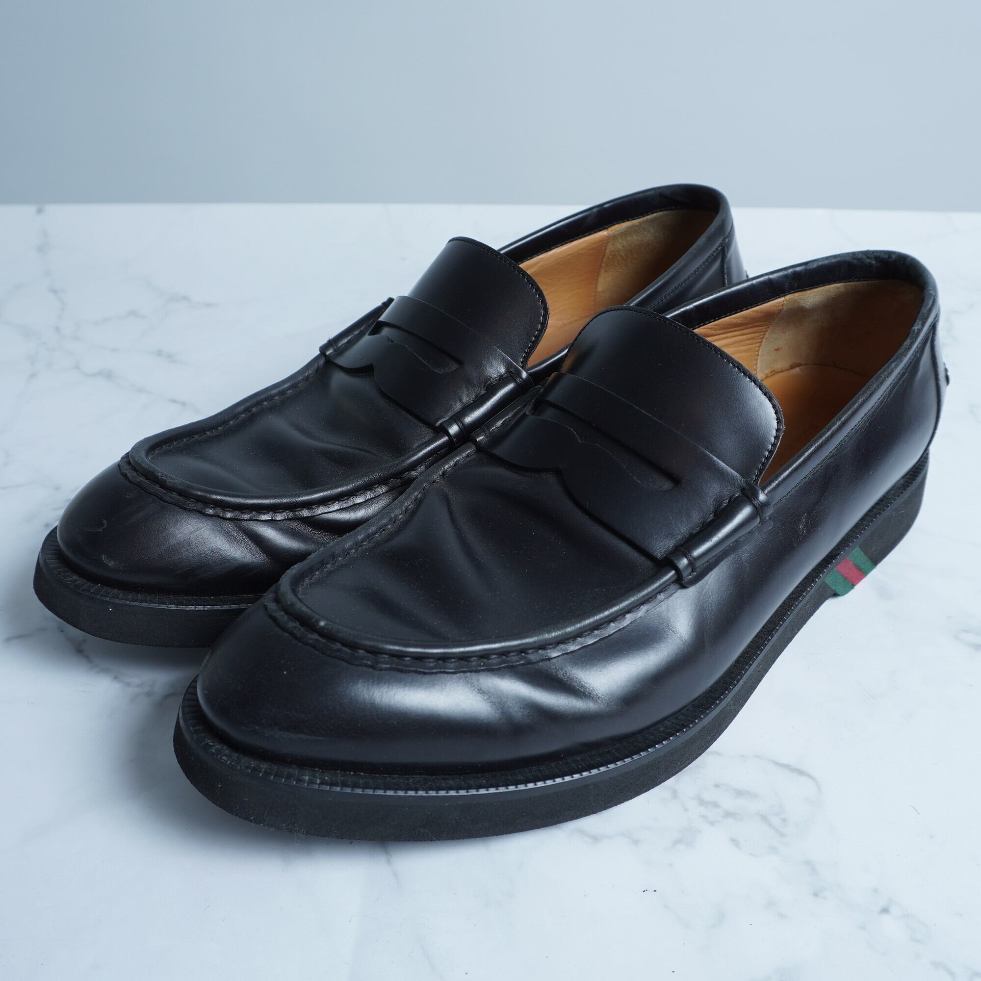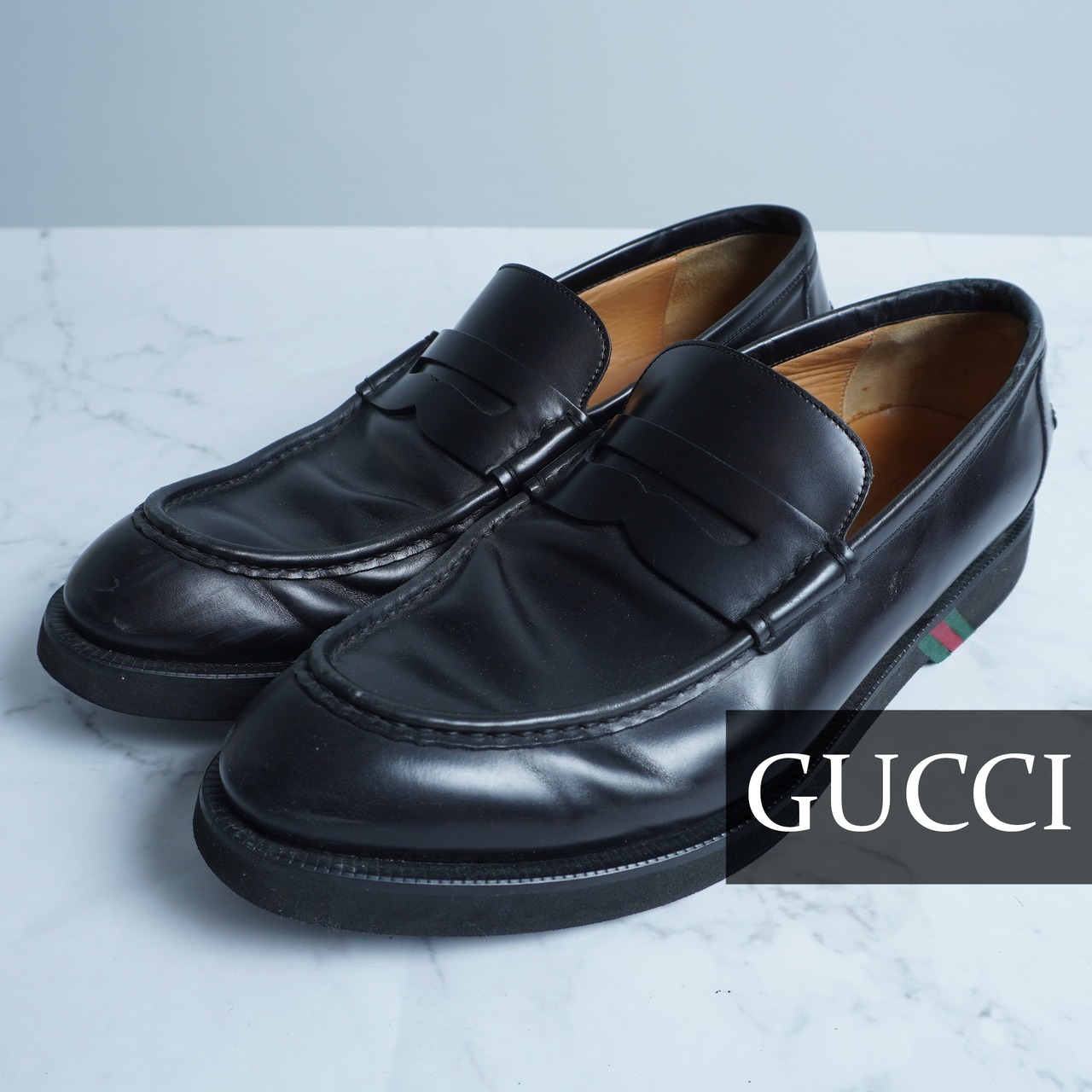 【GUCCI】グッチ シェリーライン ソール レザーローファー 7 1/2 black