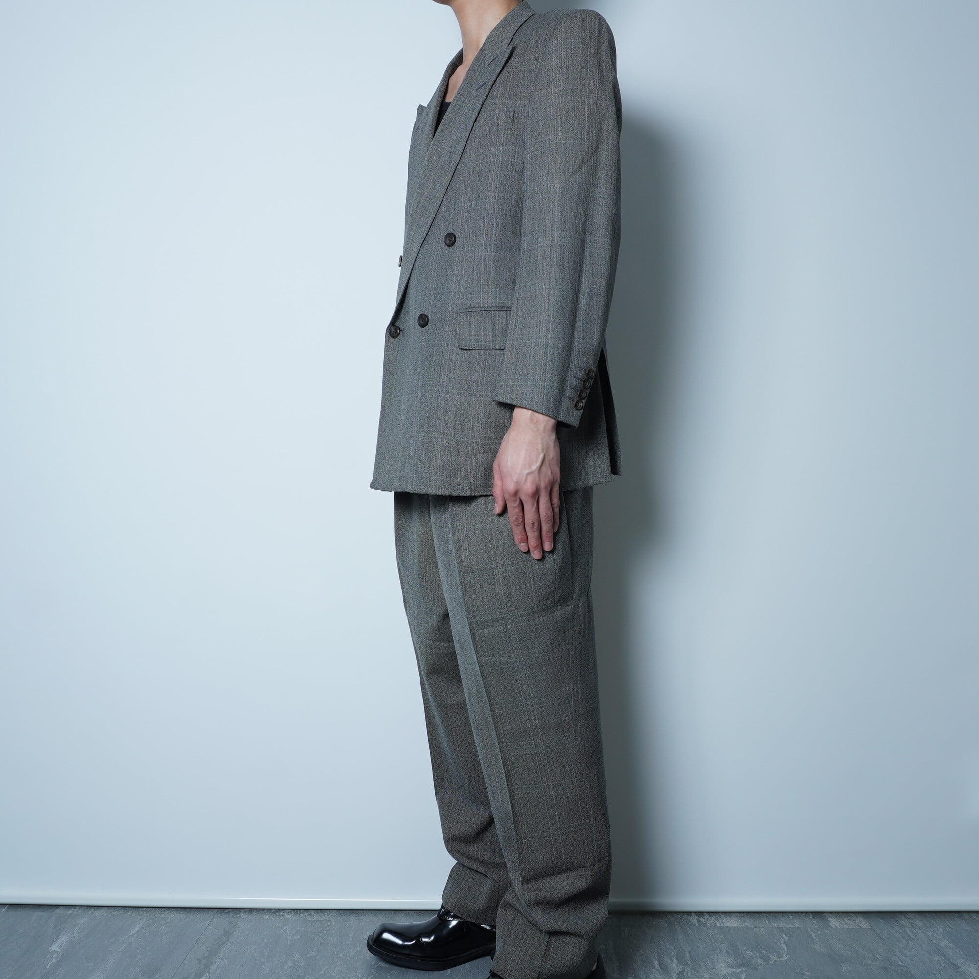【BURBERRY】バーバリー ウール100% シャドーチェック ダブルセットアップスーツ light gray