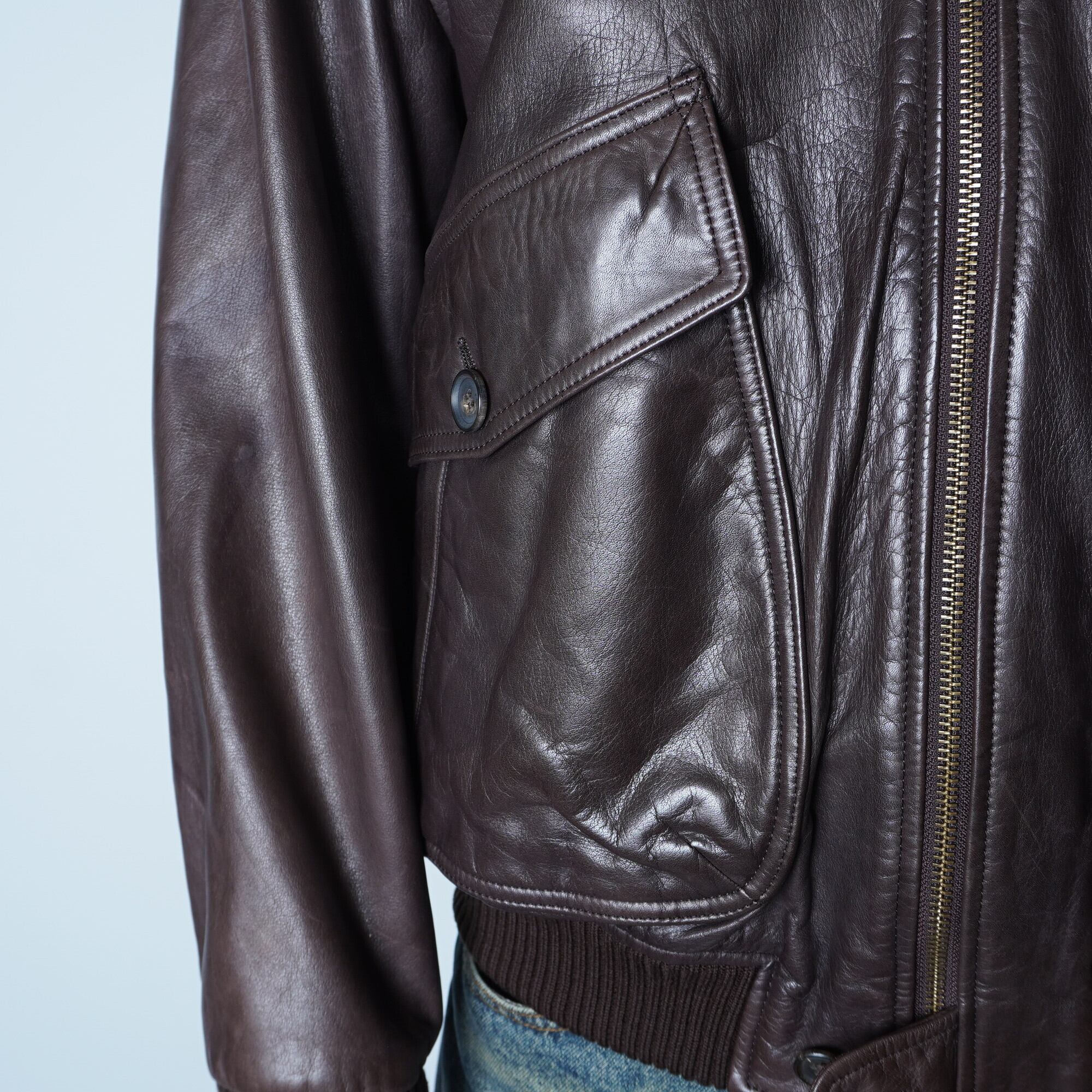 ・クラシックなフライトジャケットのデザインを引き立てる、上質なカウレザーを使用しています。