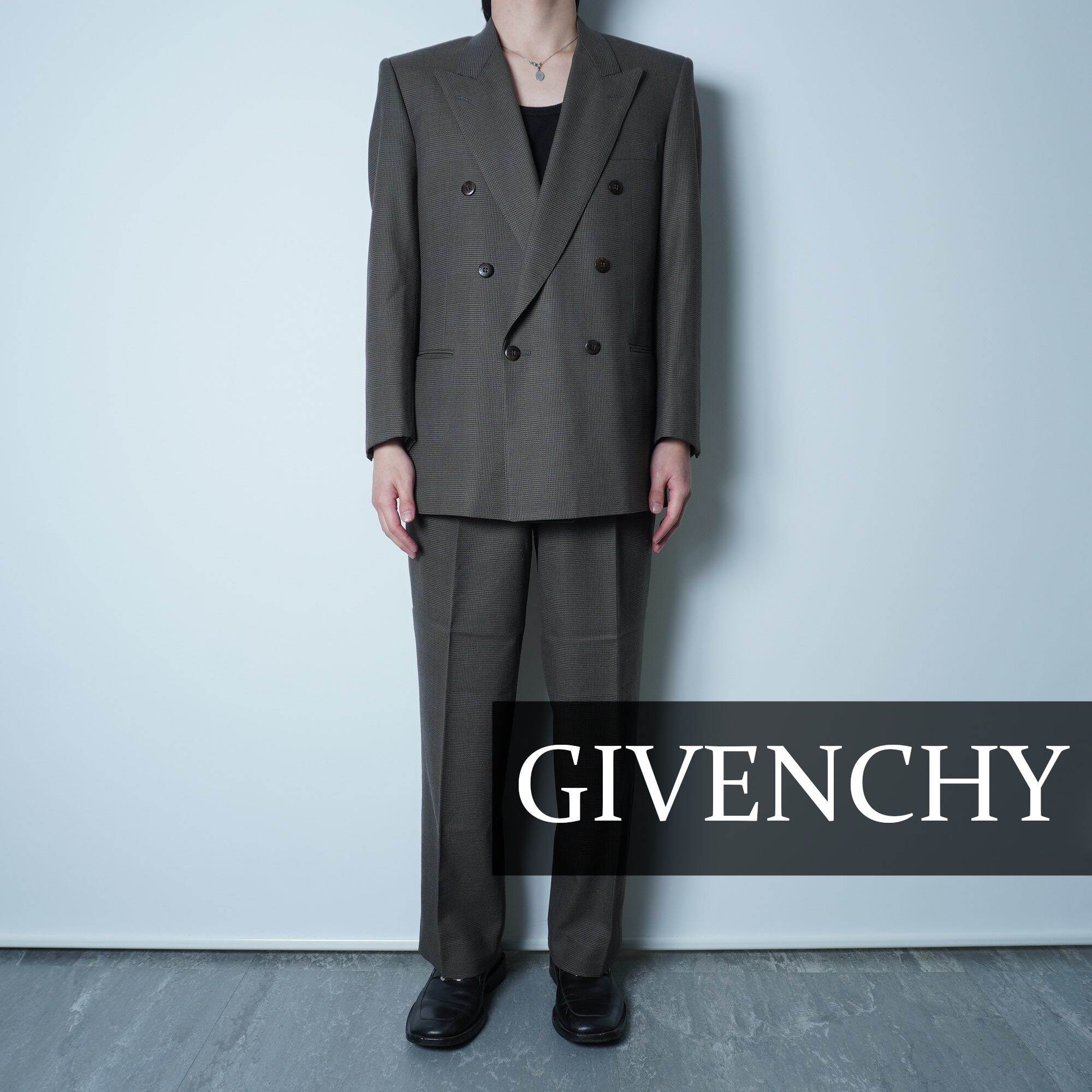 【GIVENCHY】ジバンシー ウール100% ミニ千鳥 ロゴボタンダブルセットアップスーツbrown navy