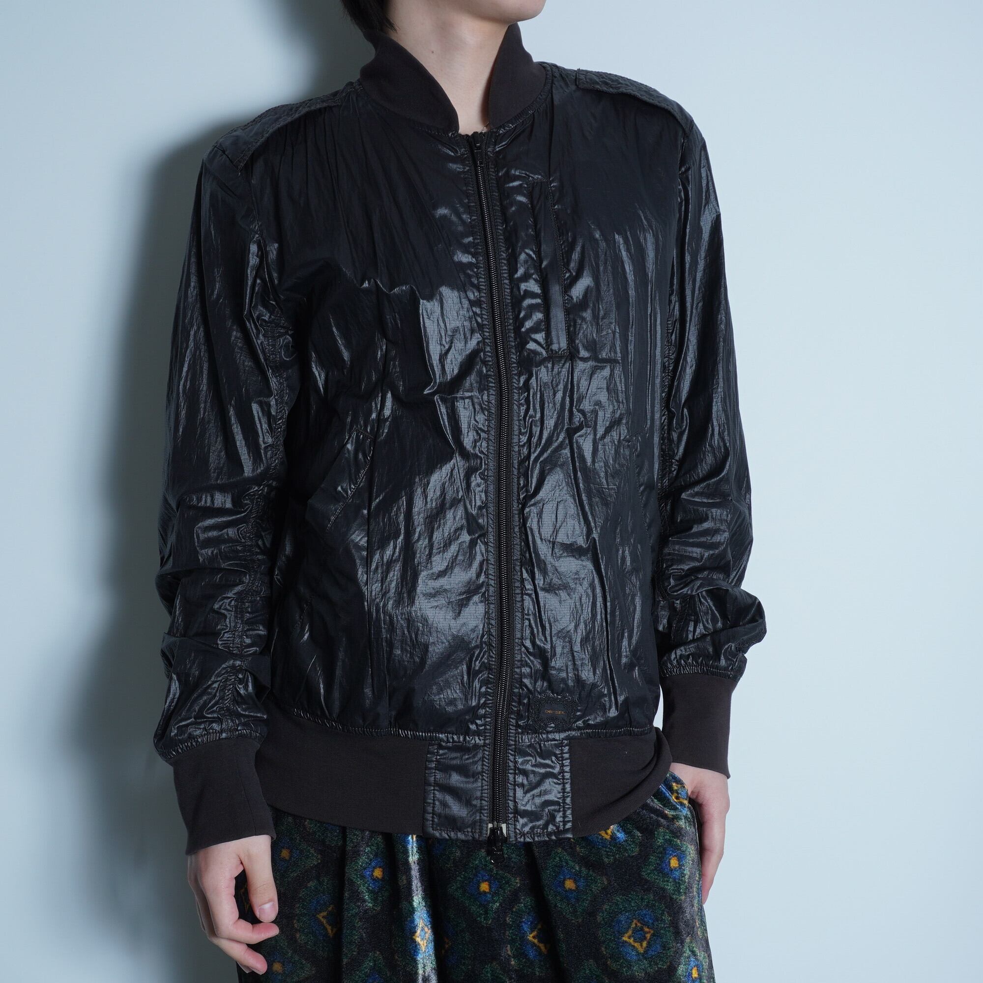【DIESEL】ディーゼル Y2K ポリエステルリブ切り替えジップジャケット black