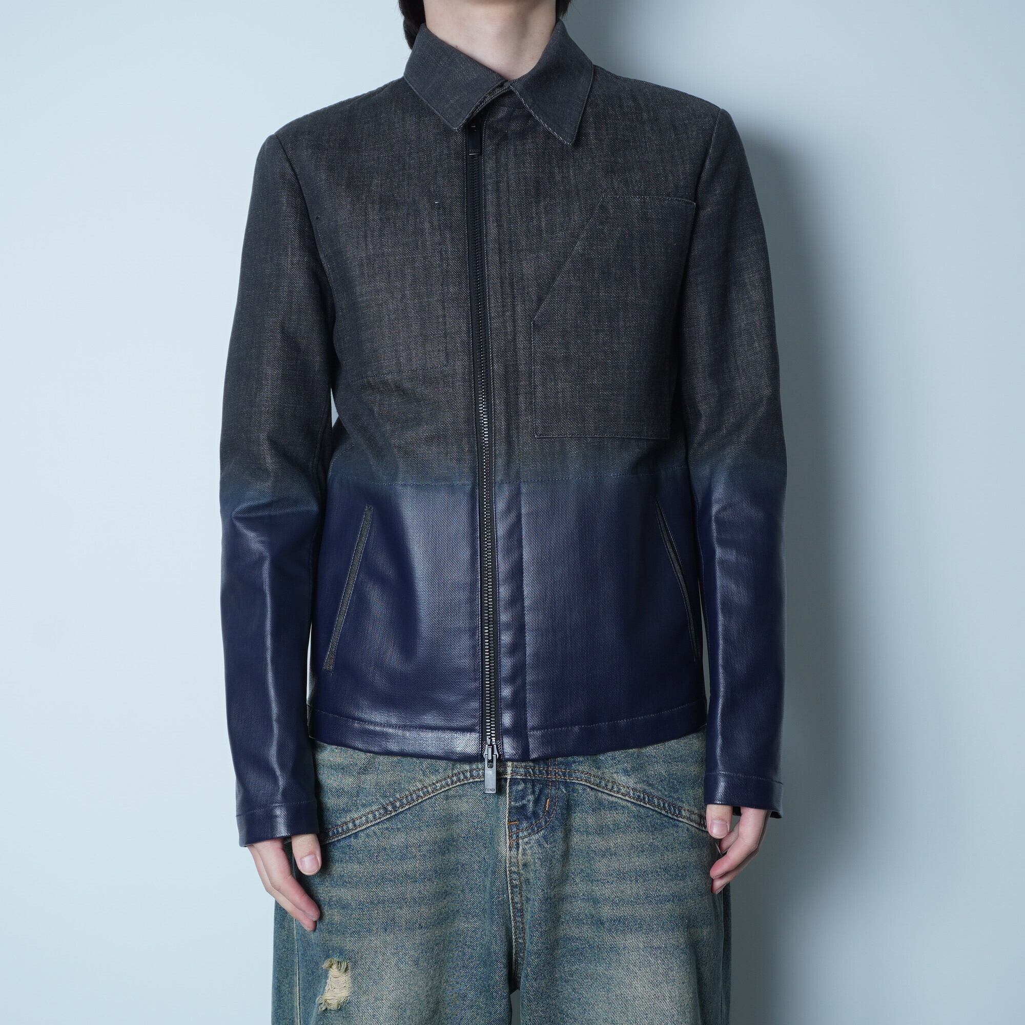 【FENDI】フェンディ バイカラー デニム コーティング ライダースジャケット black × navy