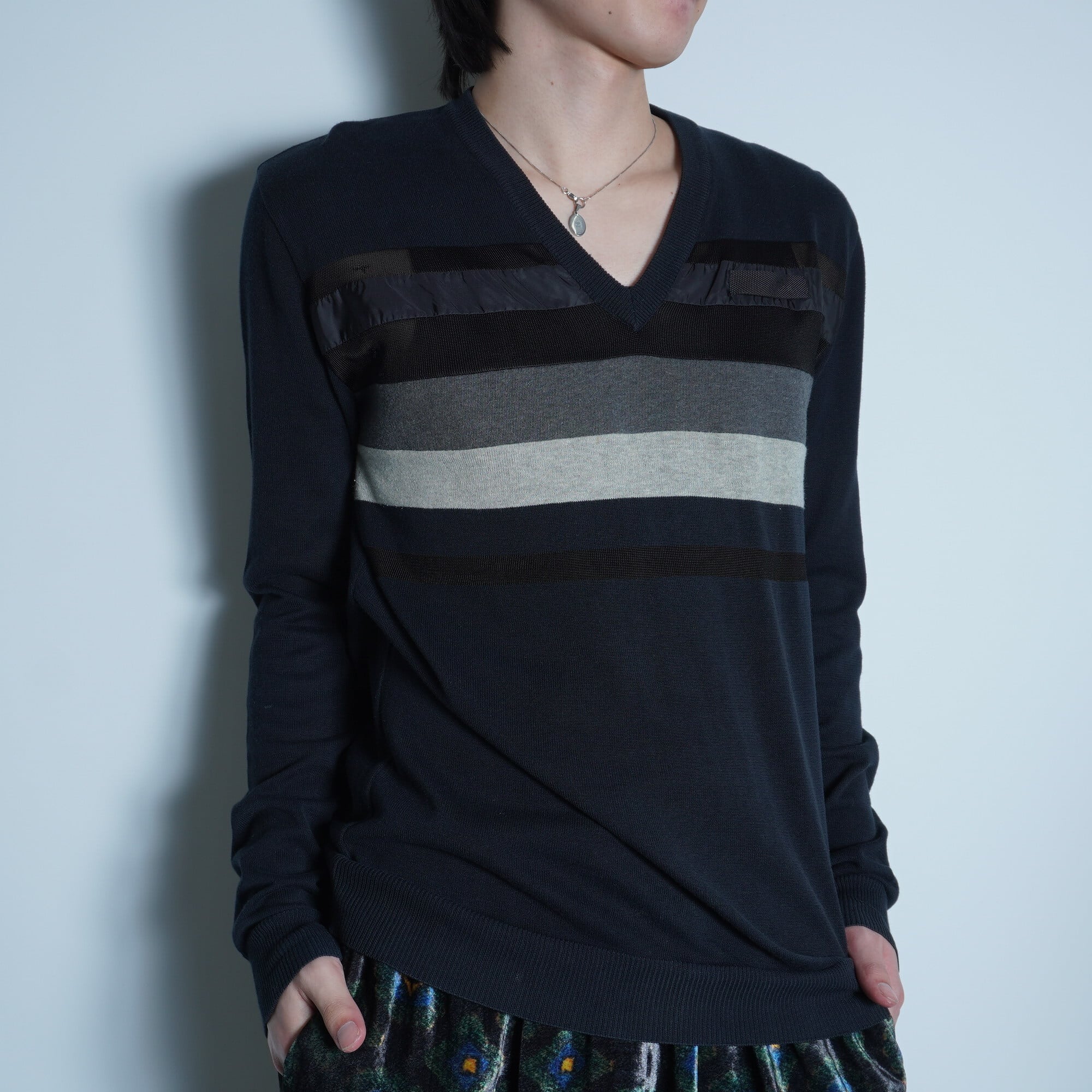 【PRADA】プラダ Vネックパターン 切り替えコットンニットソー