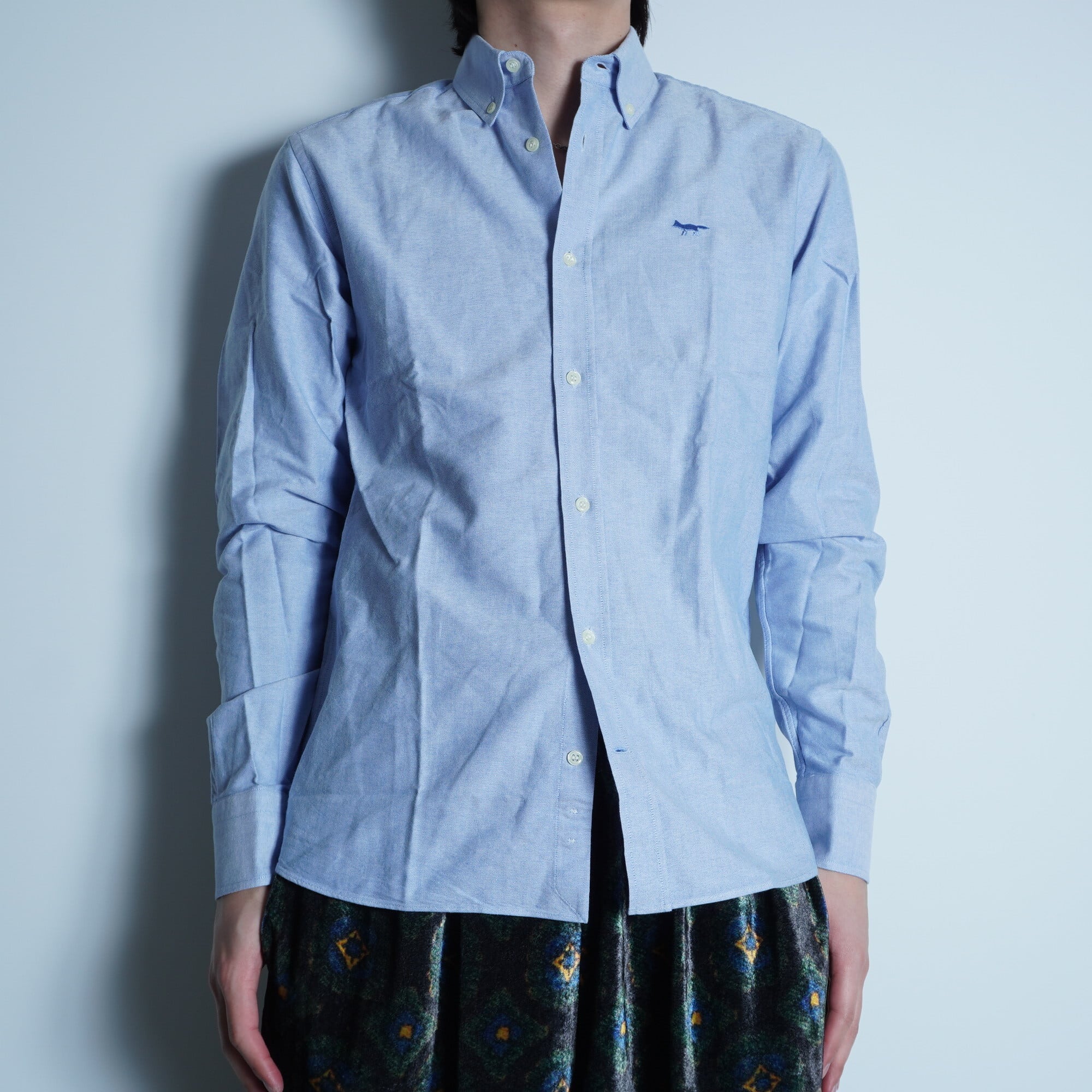 【MAISON KITSUNE】``FOX刺繍‘‘ ボタンダウンコットンシャツ blue