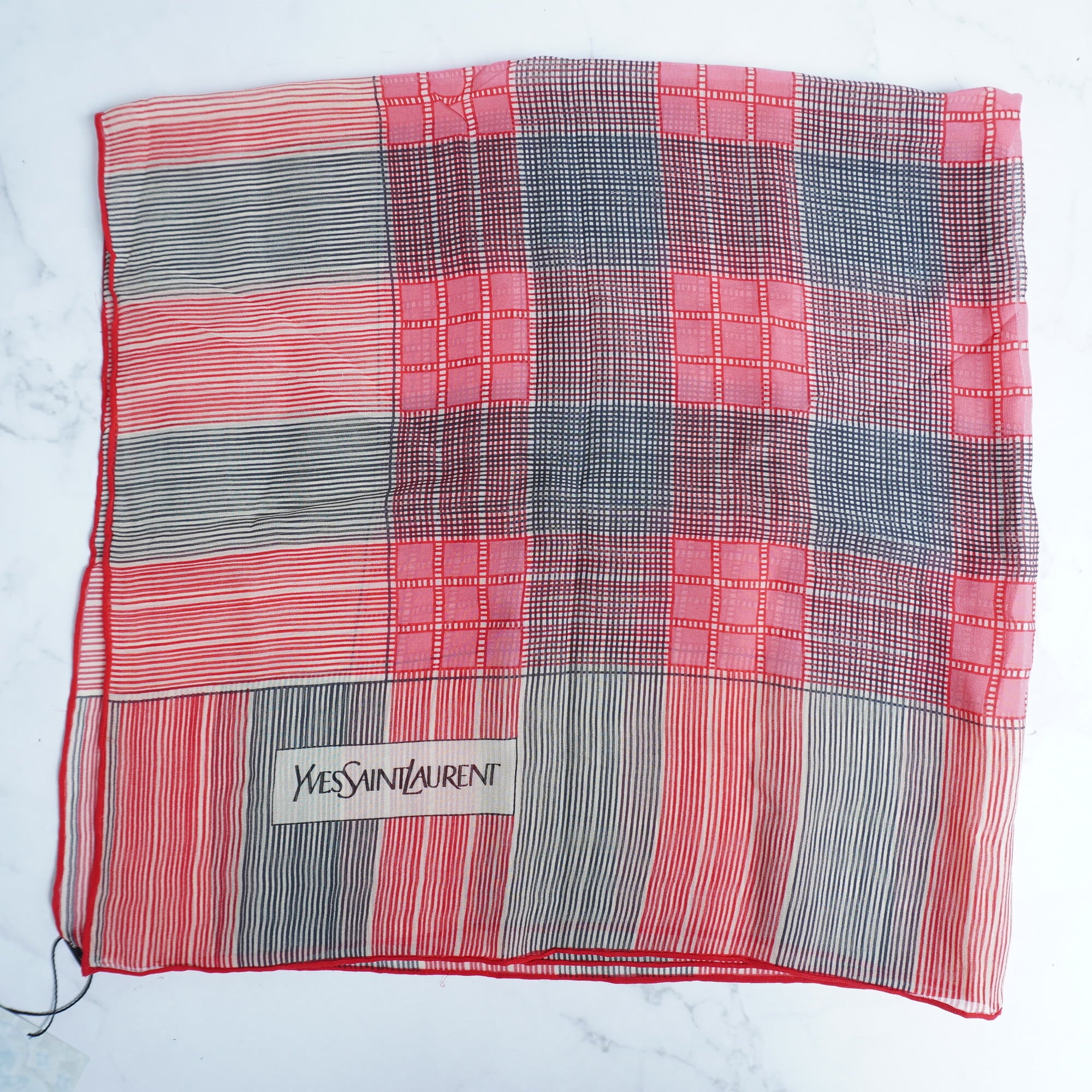 【Yves Saint Laurent】イブサンローラン チェック柄 シルクスカーフ red