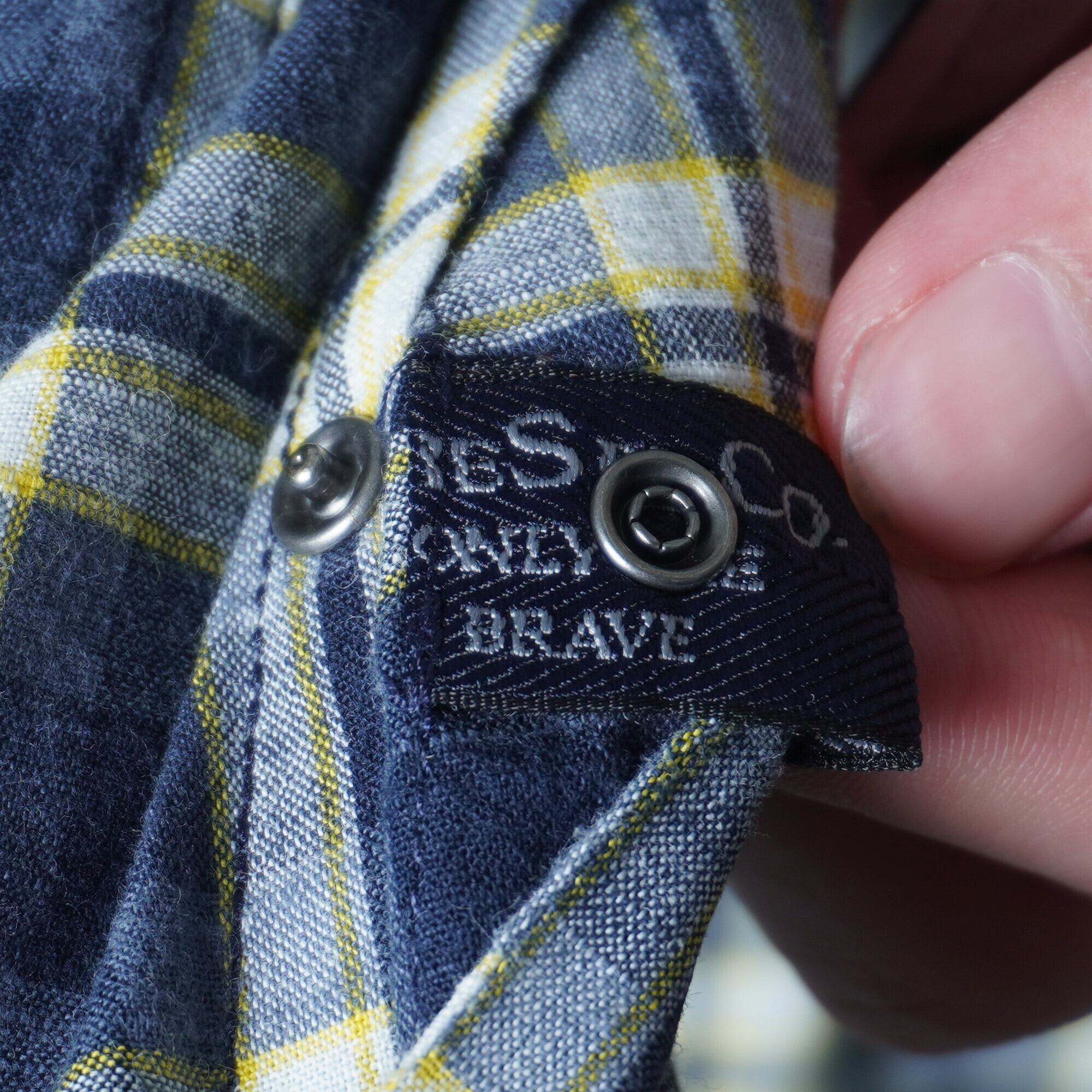 【DIESEL】ディーゼル ボタン ロゴ刻印 パッチ付きコットンチェックシャツ navy yellow