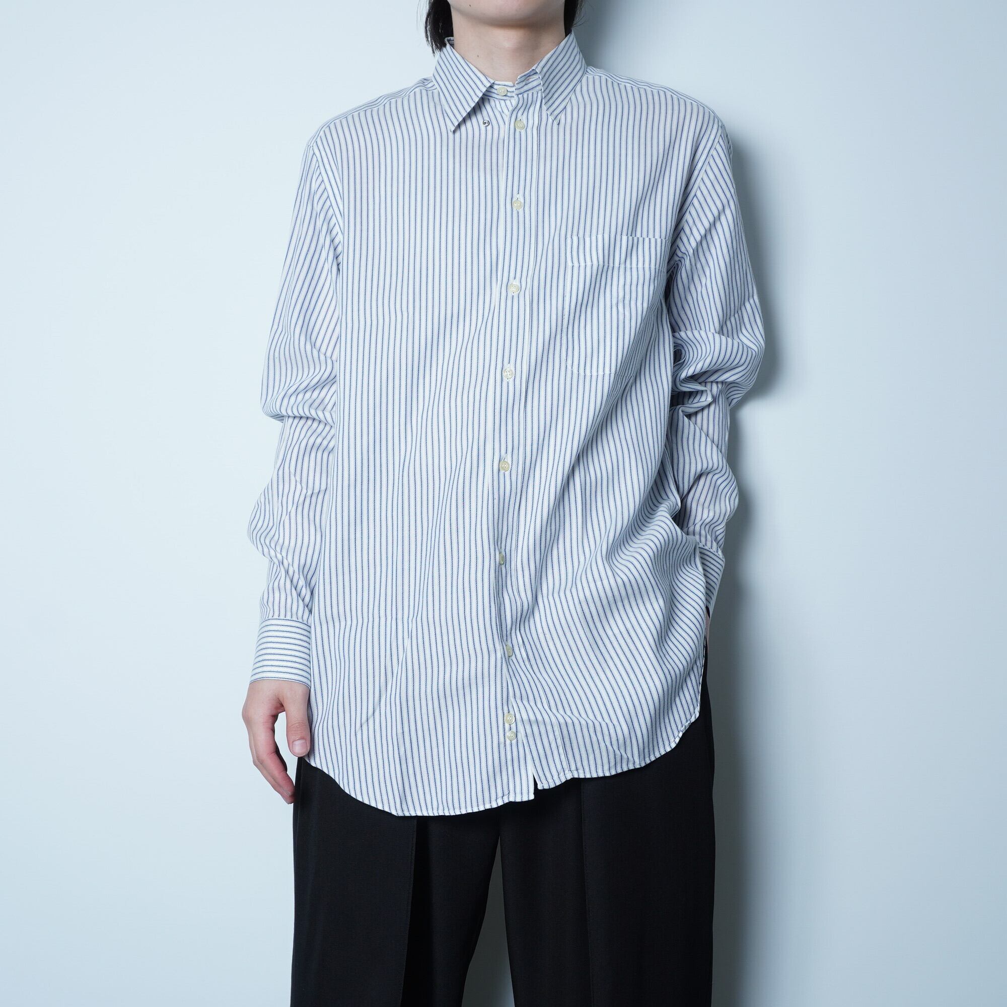【ARMANI】アルマーニ コットンストライプシャツ white × blue 40
