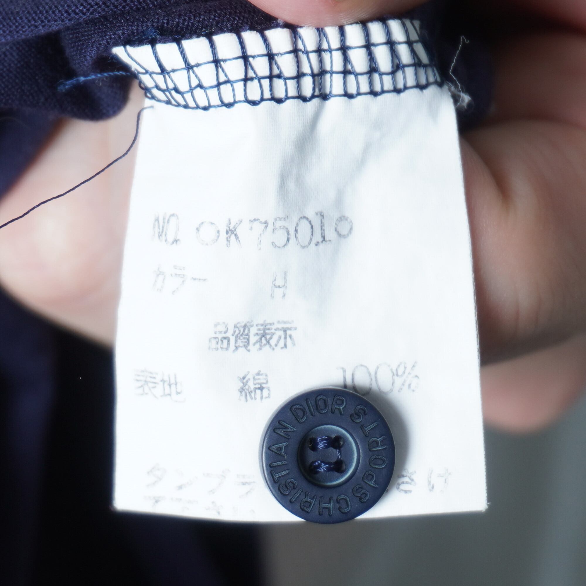 【Christian Dior】クリスチャンディオール "CD刺繡" 長袖コットンシャツ navy