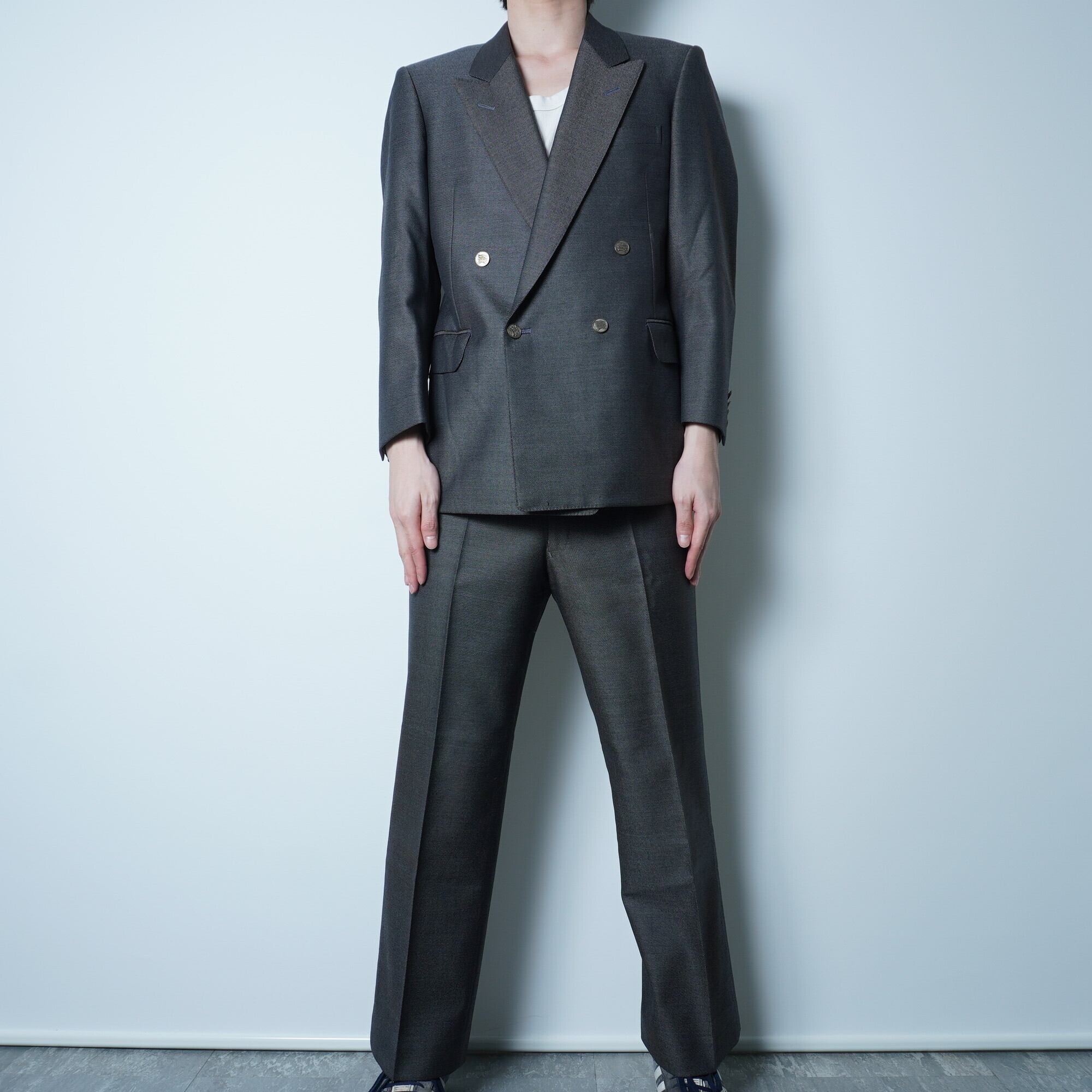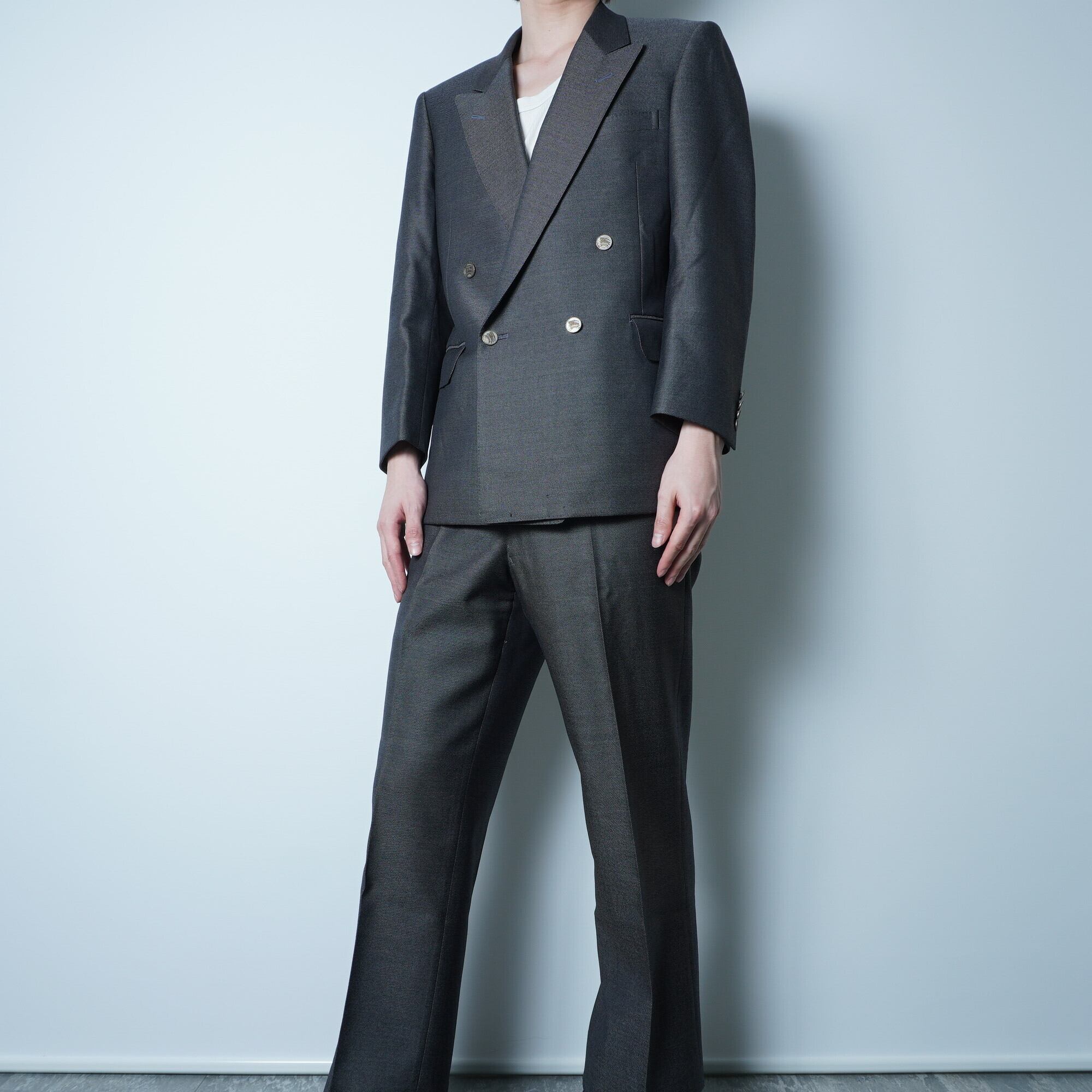 【BURBERRY】バーバリー ウール100% ツイル ダブル ロゴボタン セットアップスーツ gray