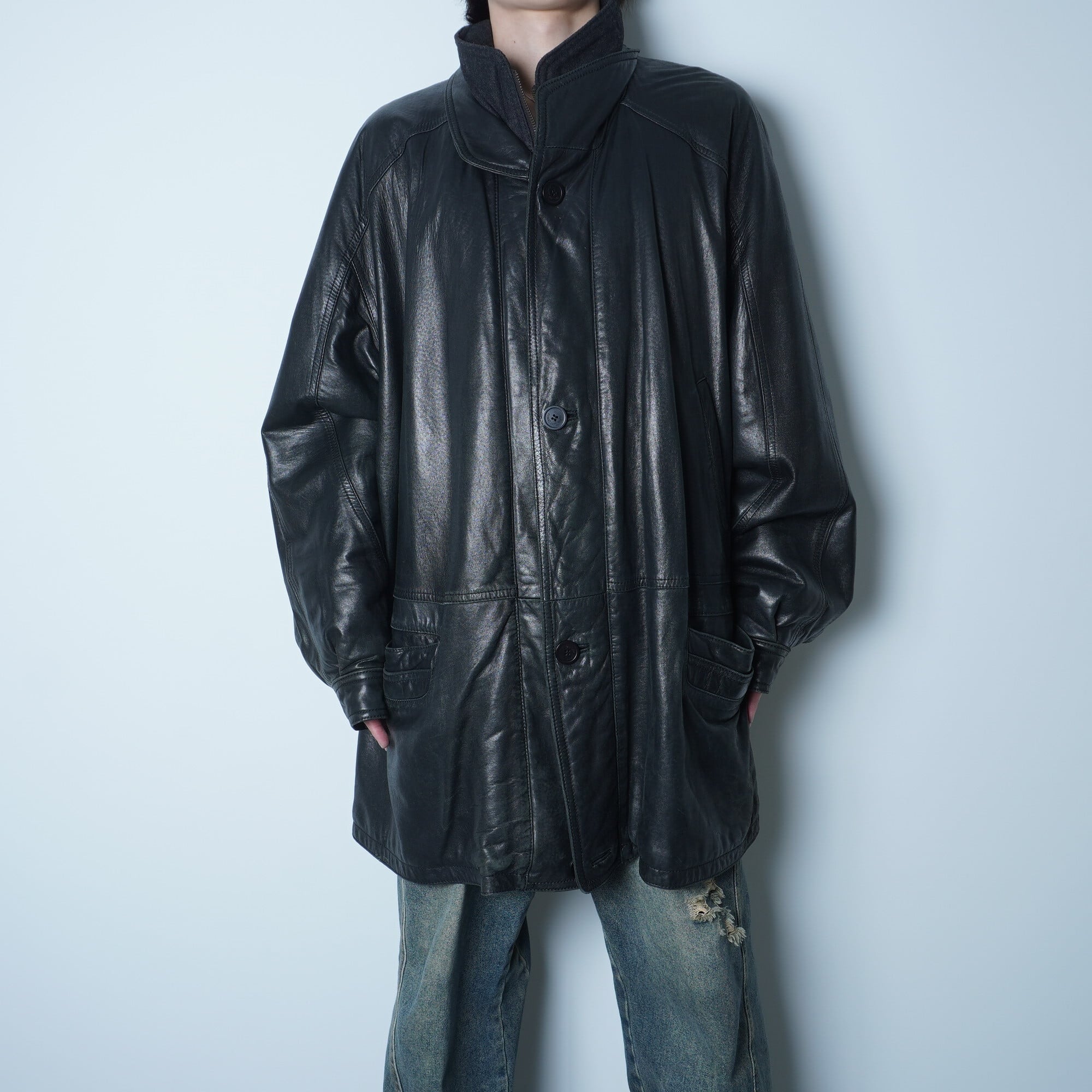 【Yves Saint Laurent】イブサンローラン archive YSLロゴ ラムレザージャケットコート