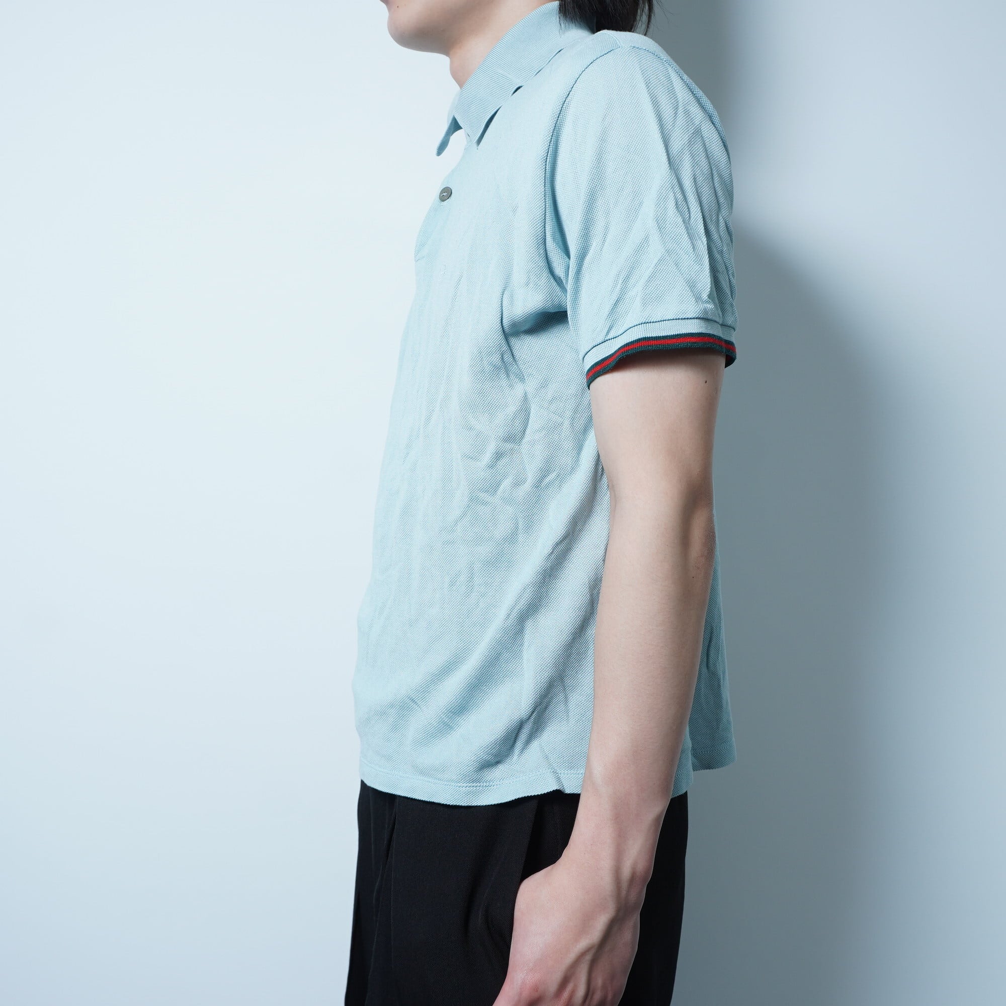 【GUCCI】グッチ イタリア製 Gロゴ刺繡 ワンポイント ライン切替ポロ navy