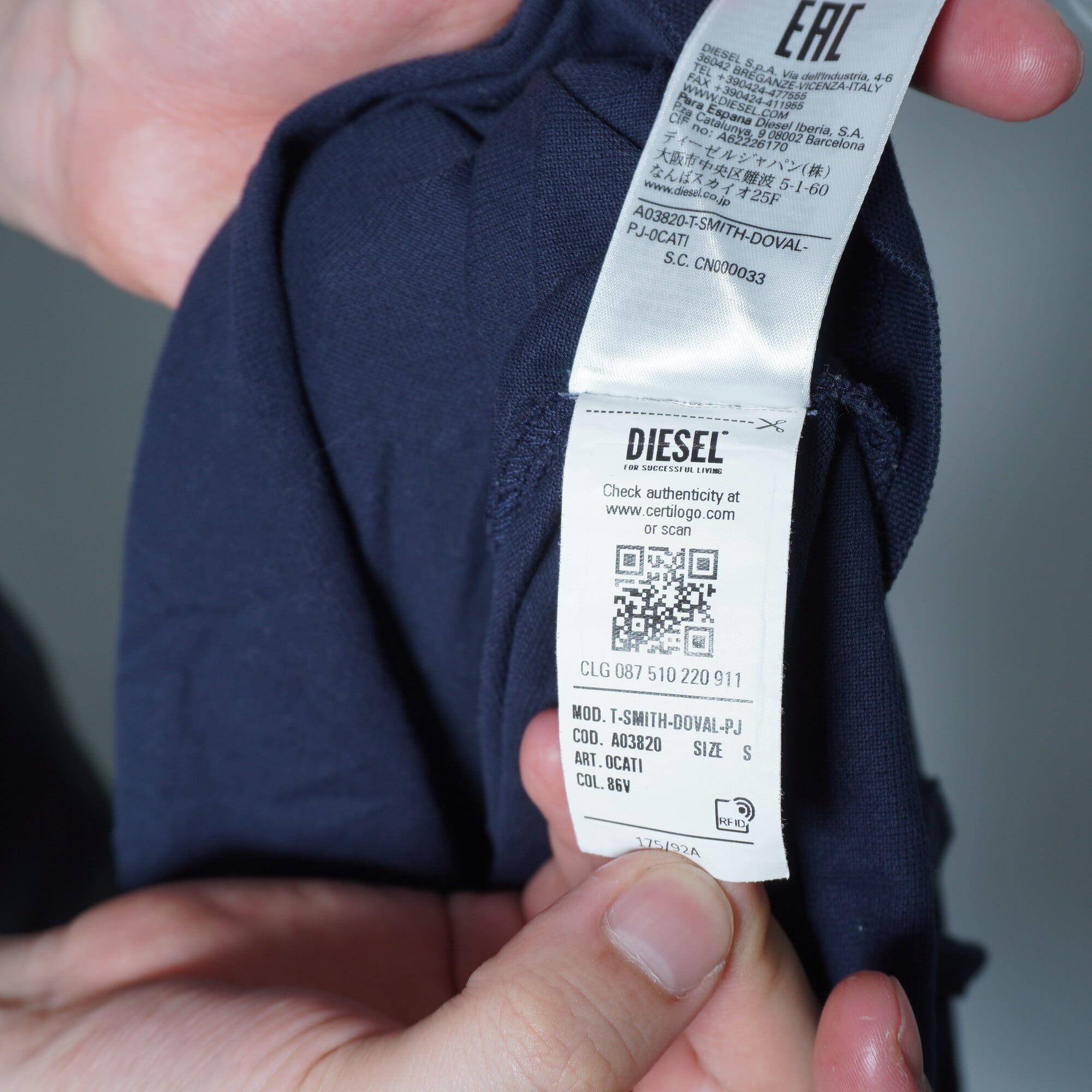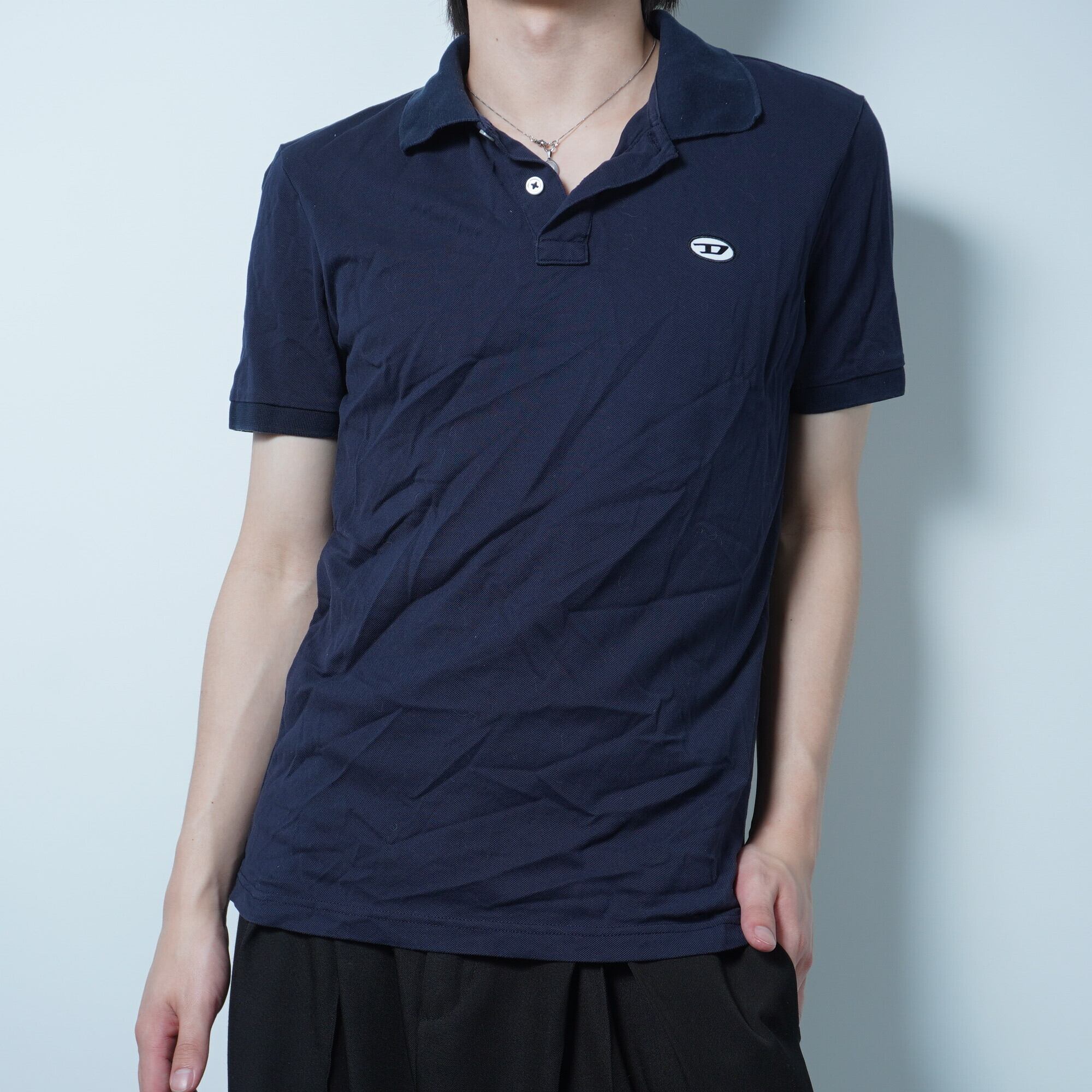 【DIESEL】ディーゼル Dロゴ ワンポイント鹿の子ポロシャツ dark navy