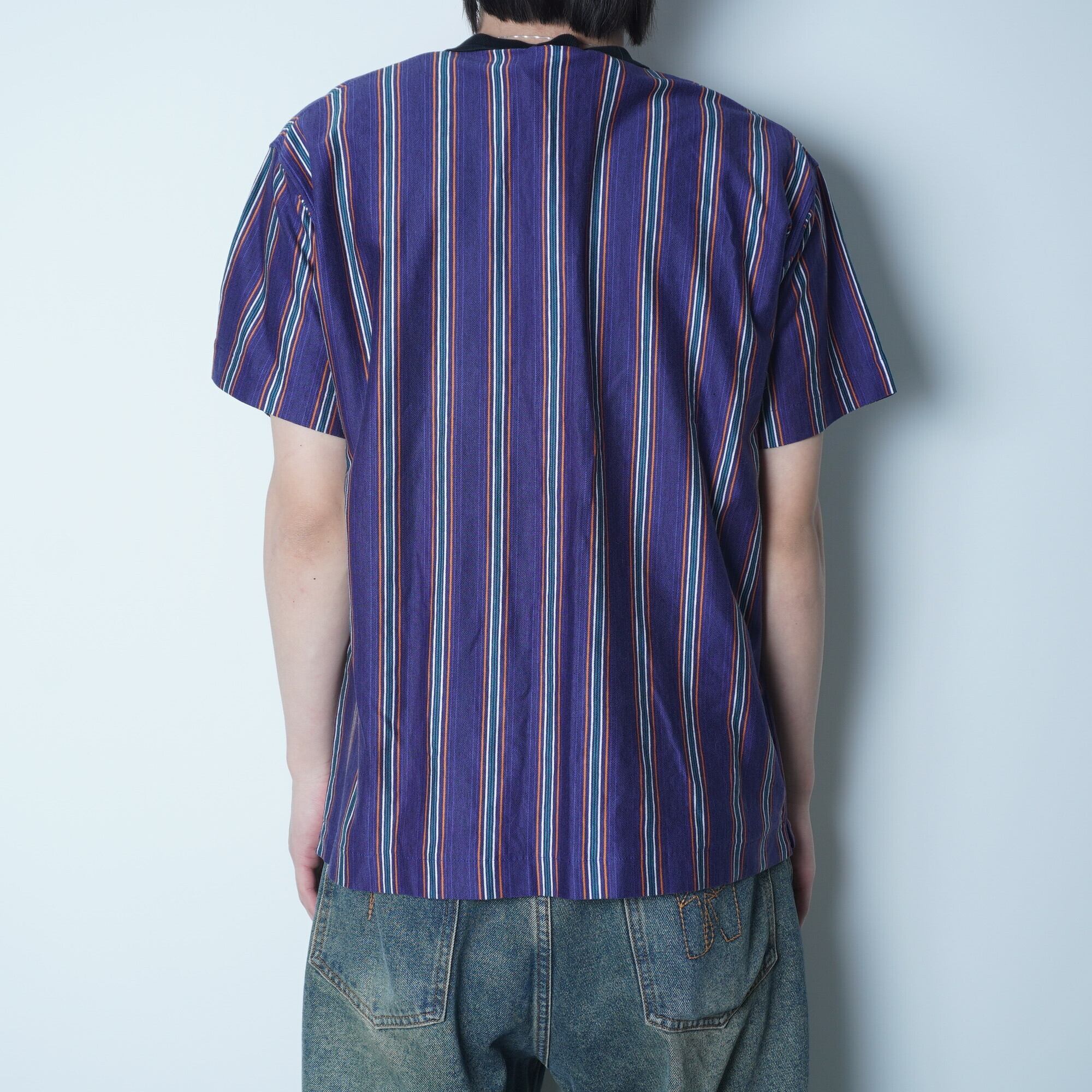 ・マルチカラーストライプ × ブラック襟