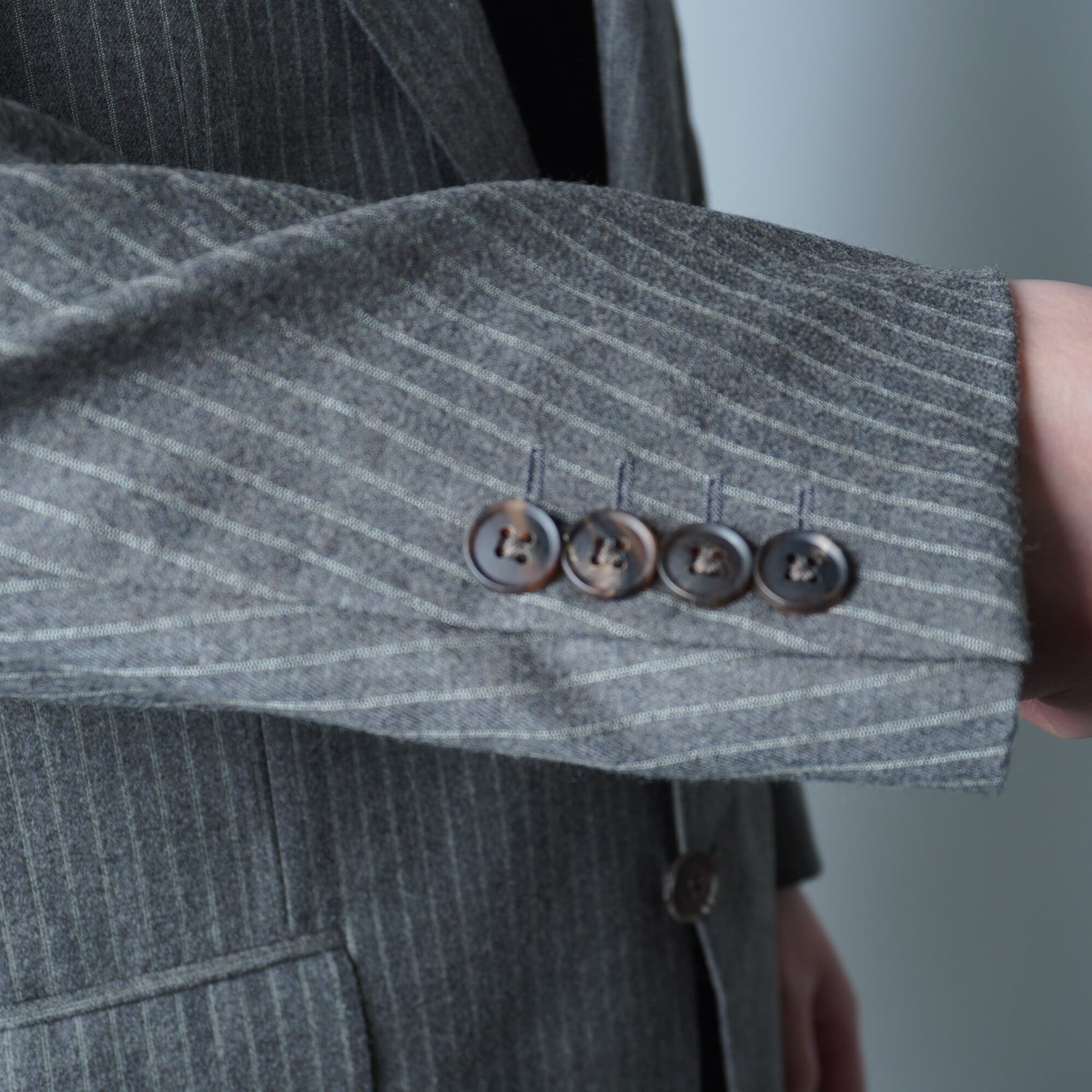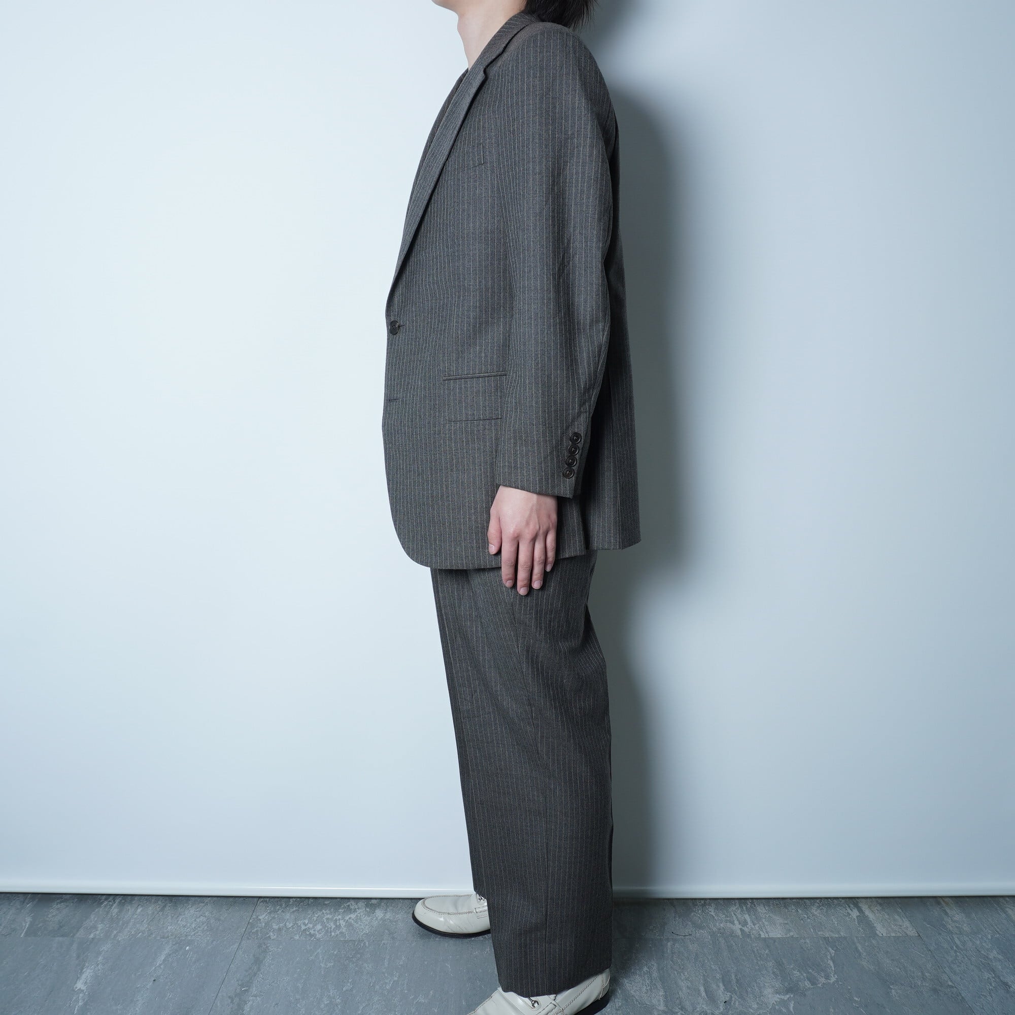 【BURBERRY】バーバリー ストライプ wool 100% シングル2Bセットアップスーツ gray