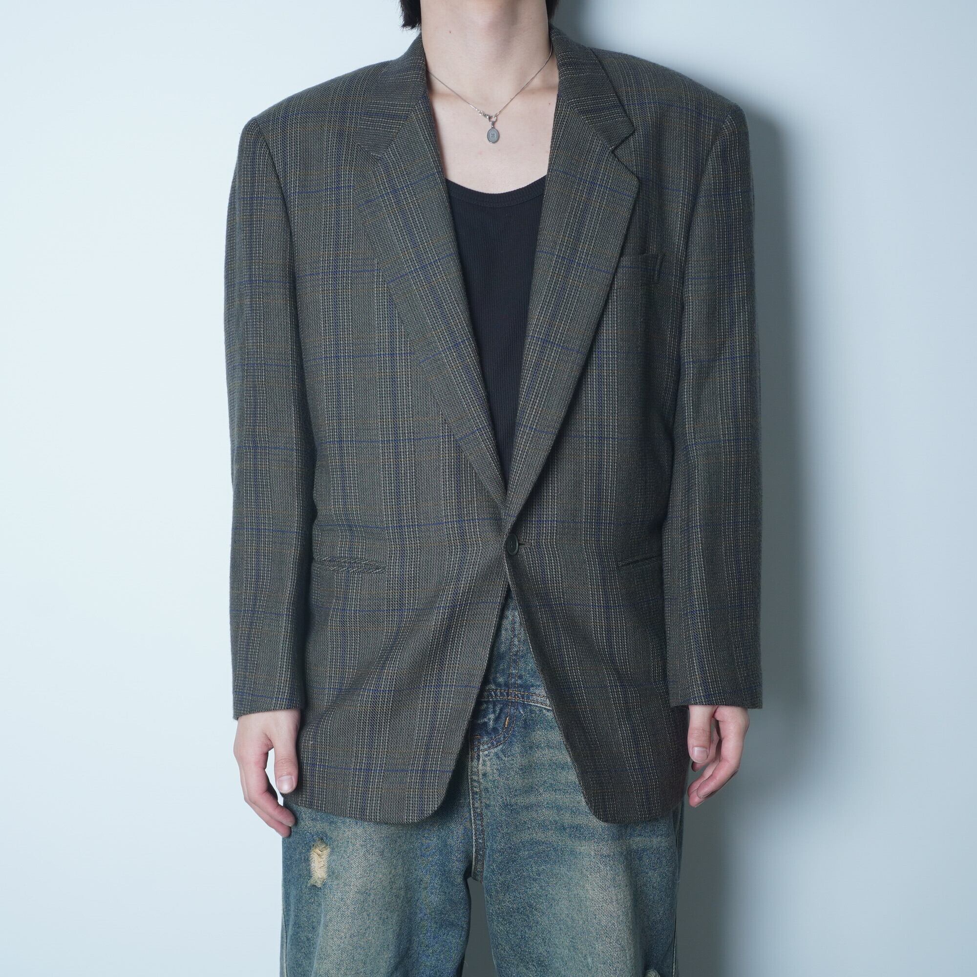 【Christian Dior】クリスチャンディオール チェック ウール100% 1Bシングルテーラードジャケット gray