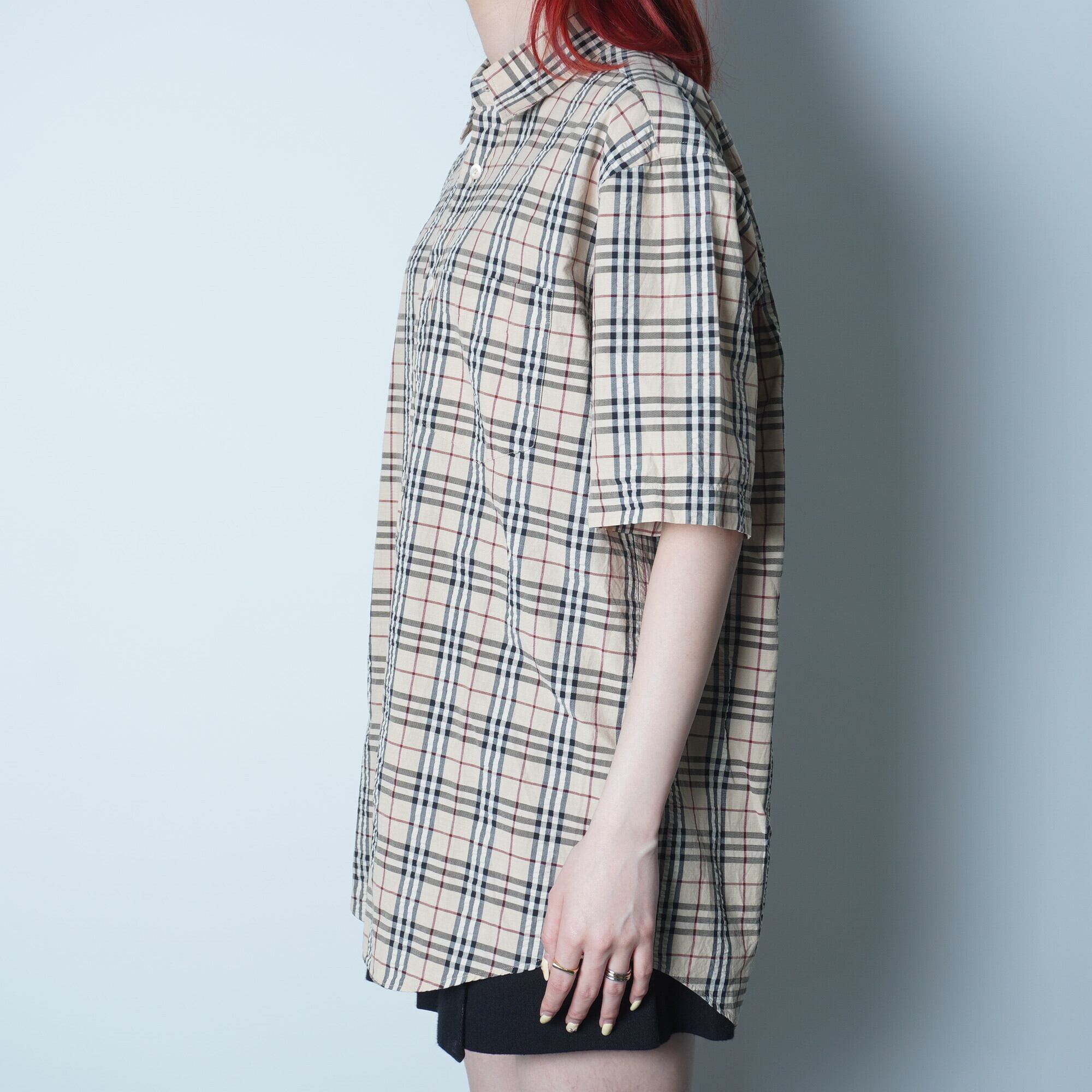 【BURBERRY】バーバリー ノバチェック柄 半袖シャツ L beige
