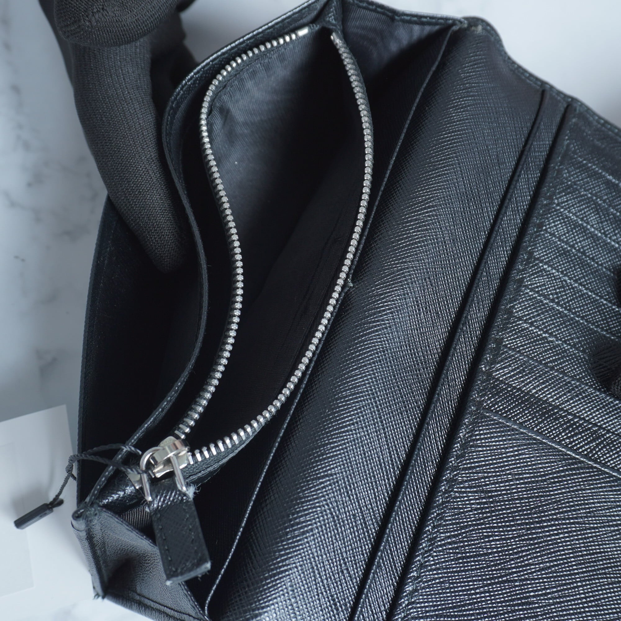 【PRADA】”トライアングルロゴ” サフィアーノ 二つ折り長財布 black