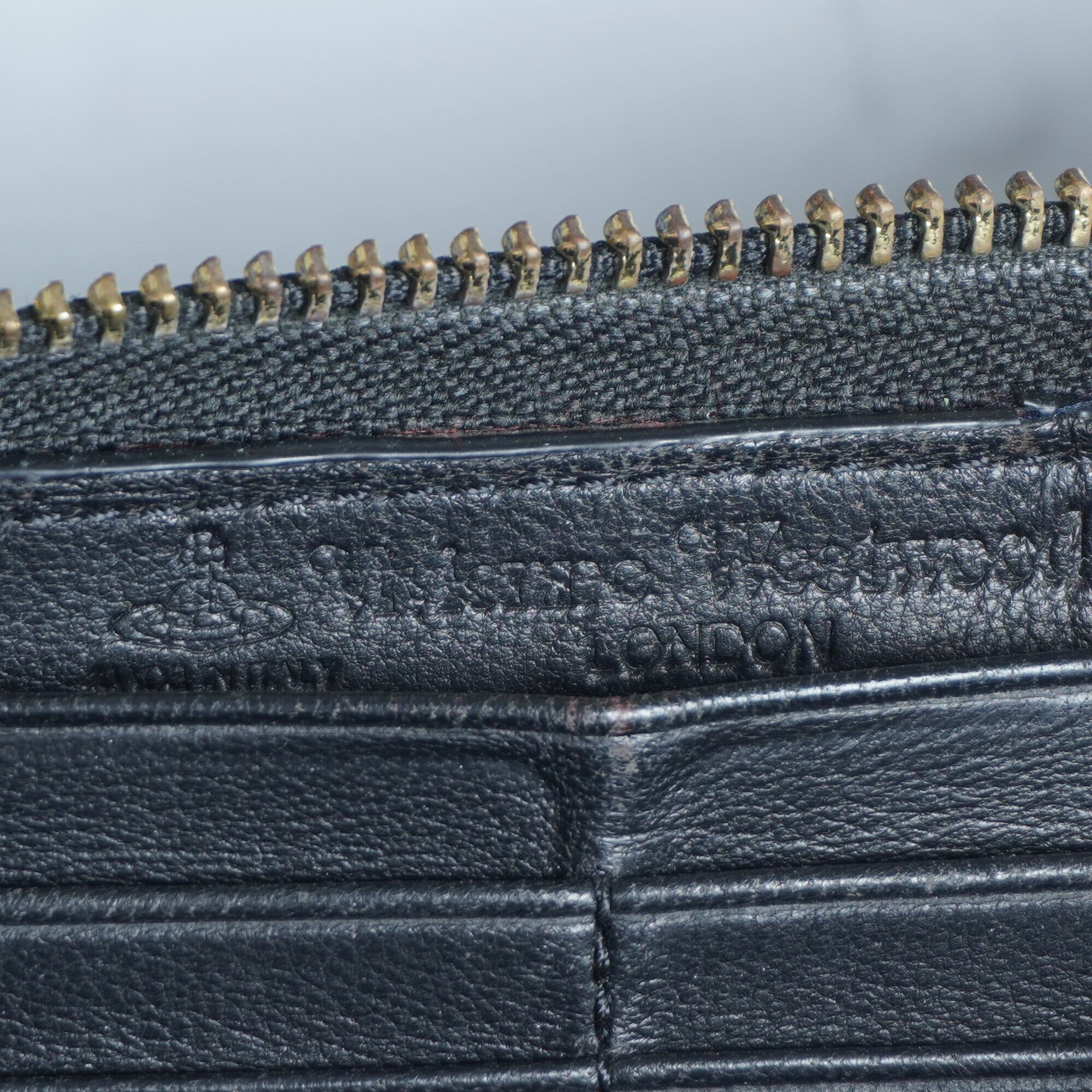 ・独特のデザインで魅了する、【Vivienne Westwood】ヴィヴィアンウエストウッド 90's vintageカラーオーブレザー長財布 black。