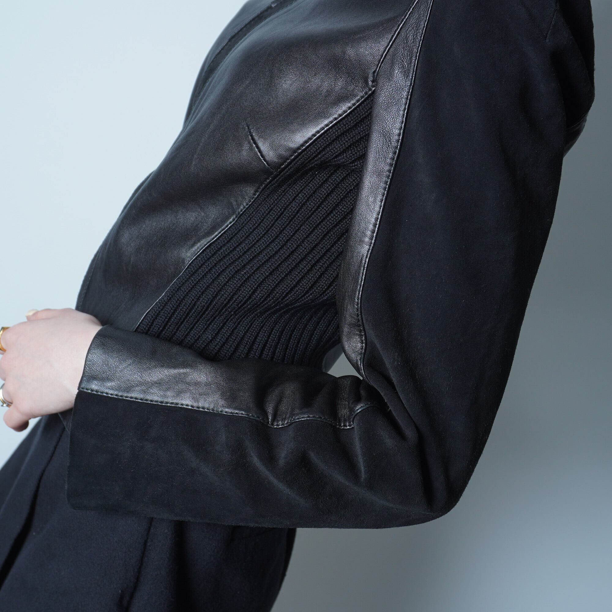 【VALENTINO】ヴァレンティノ ラムレザー&スウェード&ニット レザーblack