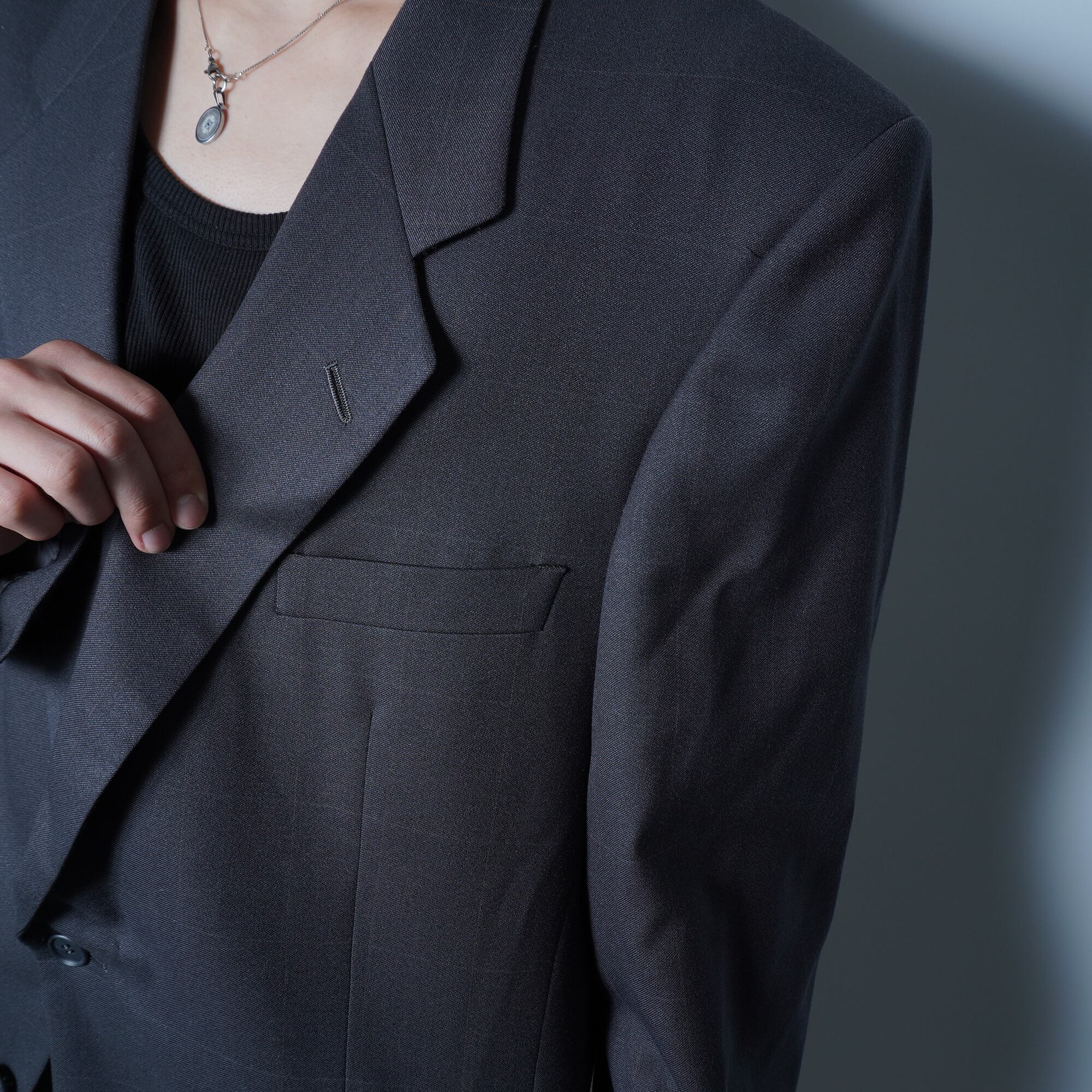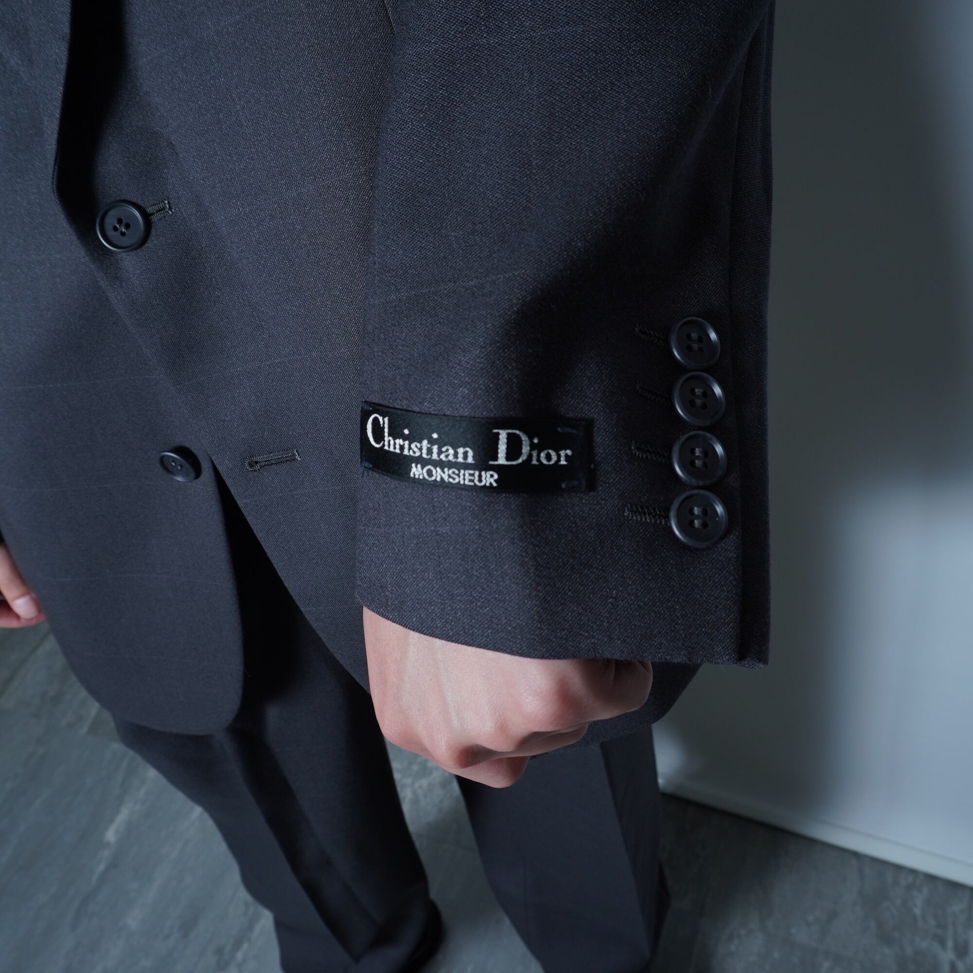 【Christian Dior】クリスチャンディオール ”タグ付”シャドーウィンドペン WOOL100%シングルセットアップスーツ chacoal gray