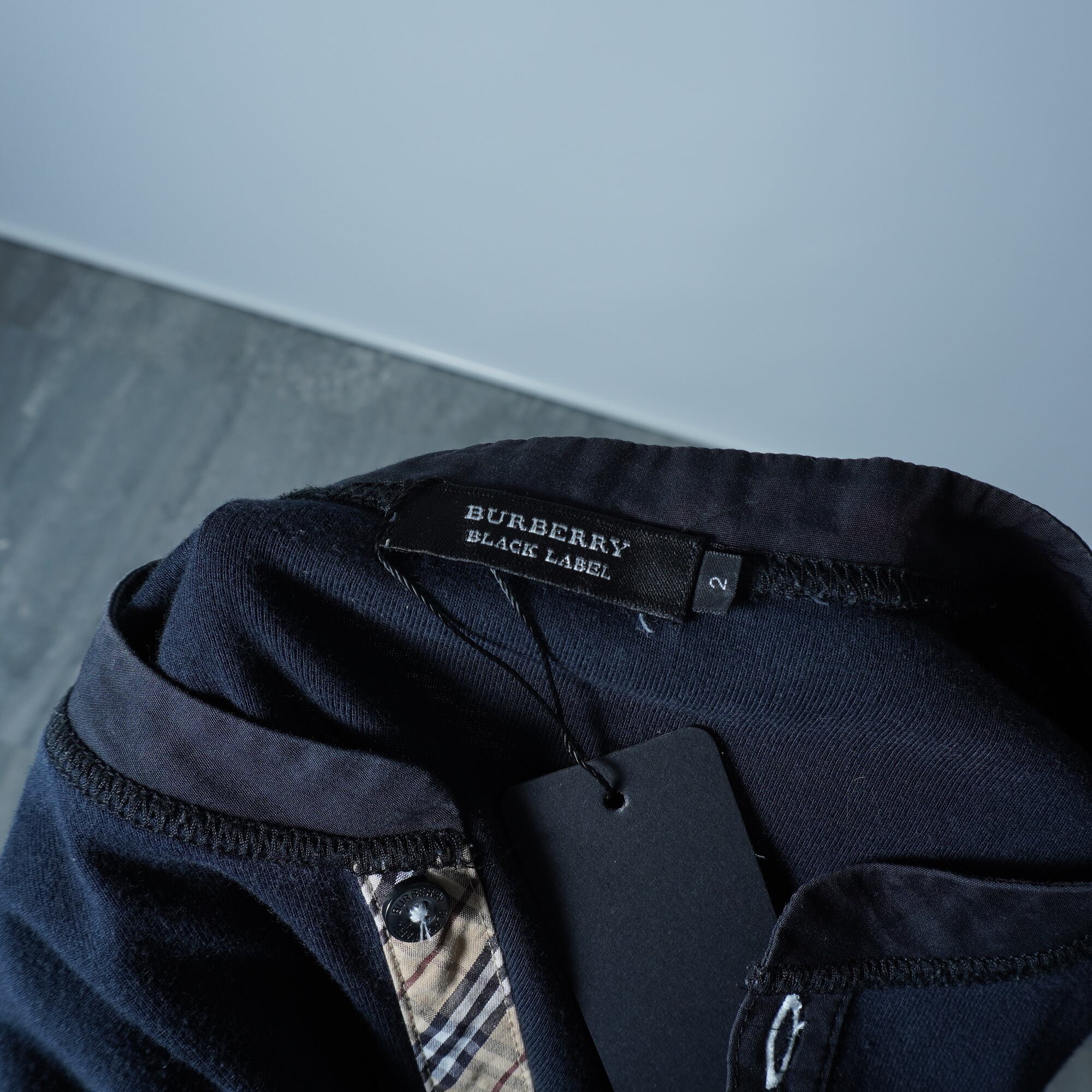 【BURBERRY BLACK LABEL】バーバリーブラックレーベル ロゴ入 クルーネックシャツ navy