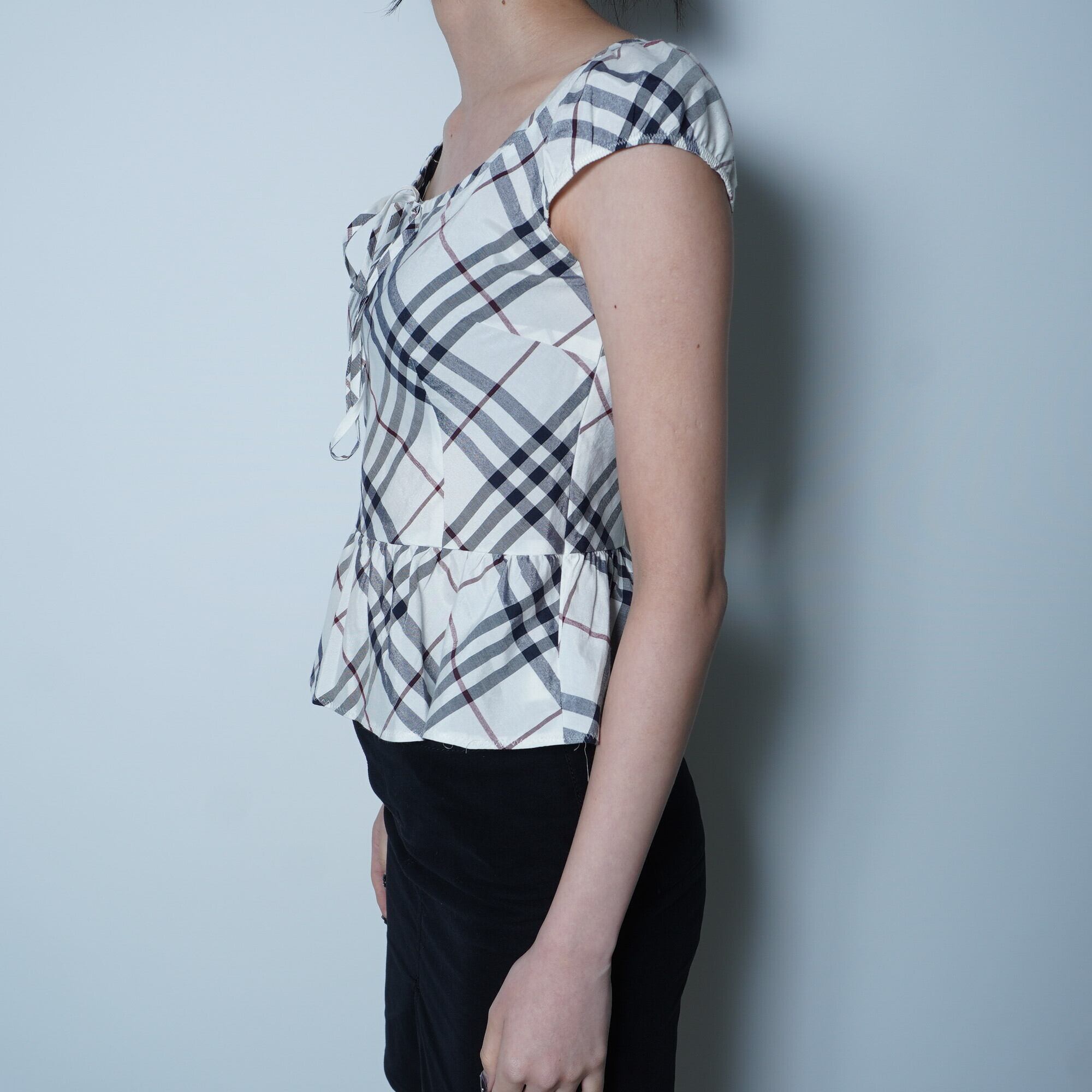 【BURBERRY】バーバリー ノバチェック フリルカットソー white& black& red