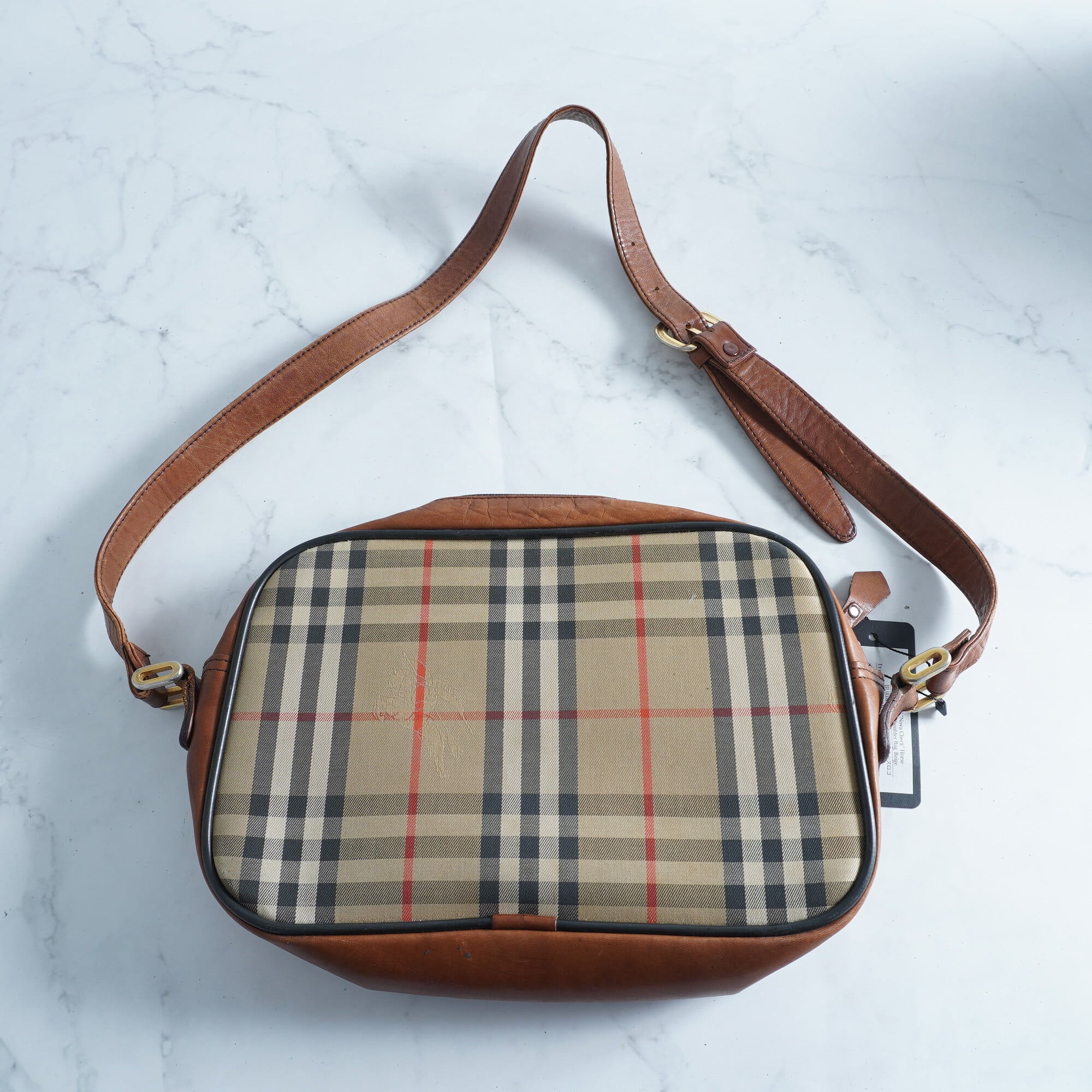 【BURBERRY】バーバリー ノバチェック ホースロゴレザー切替ショルダーバッグ beige