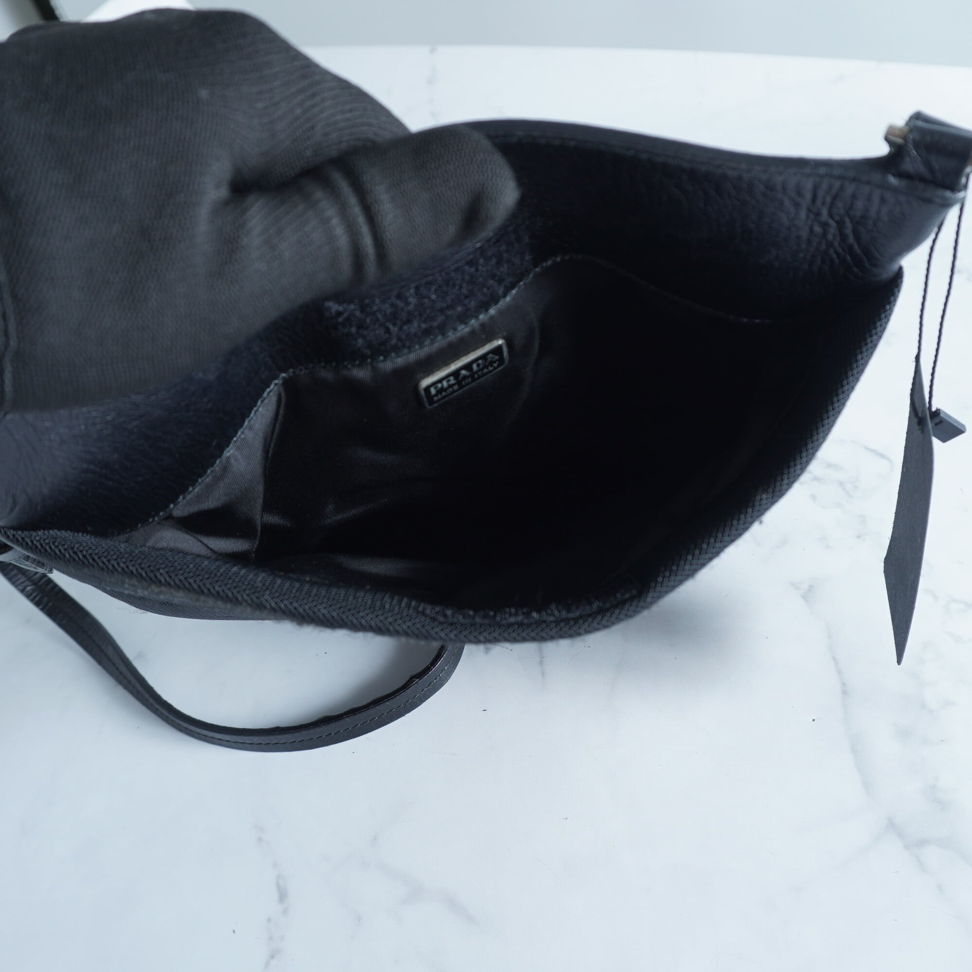 【PRADA】プラダ”ロゴ柄”レザー切替ショルダーバッグ black